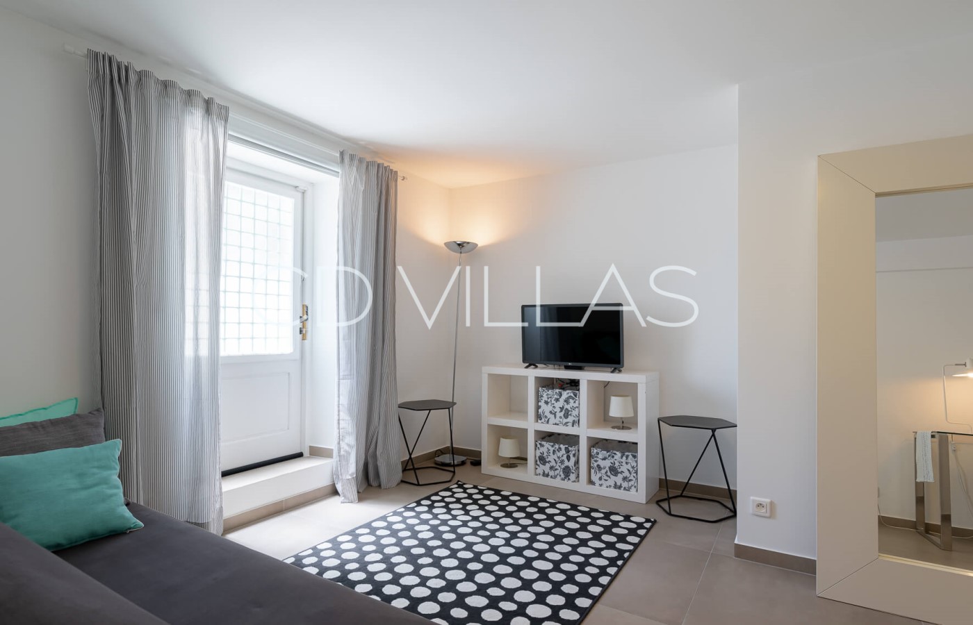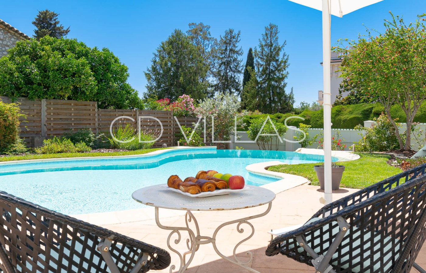 L'entrée principale ouvre sur le rez-de-chaussée avec un spacieux salon /salle à manger qui bénéficie d'une vue imprenable sur Nice et la mer. Au même niveau se trouve une cuisine moderne bien équipée avec accès à une terrasse ombragée, idéale pour le petit-déjeuner. La spacieuse chambre principale avec salle de bain attenante et climatisation est située au premier étage. Il y a aussi une deuxième chambre avec salle de douche. Depuis le rez-de-chaussée, des marches mènent à un studio avec kitchenette, salon TV et une troisième chambre, et donne sur la terrasse de la piscine et le jardin. Le salon TV est équipé d'un canapé-lit qui peut être fait sur demande.