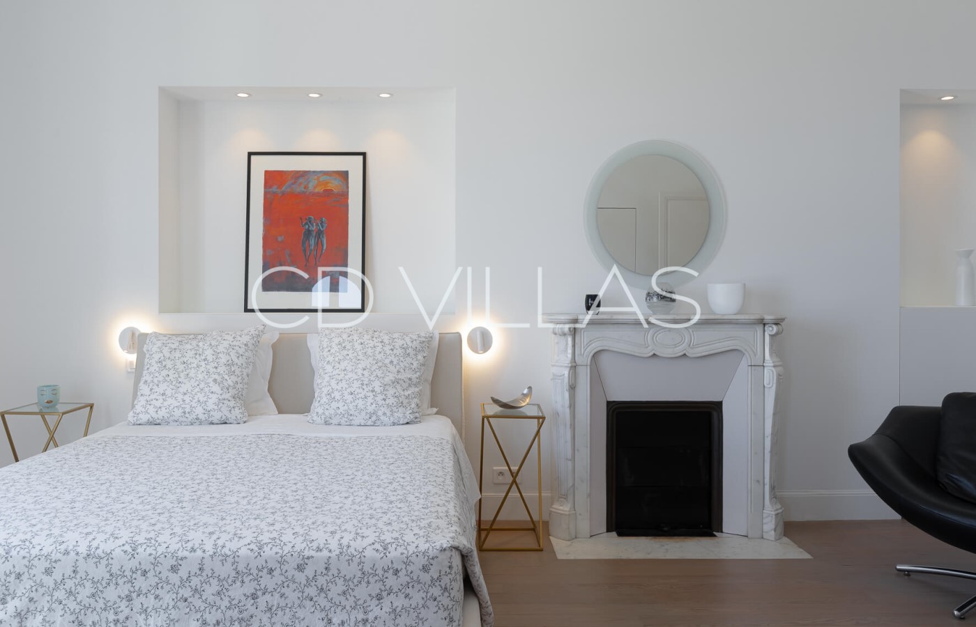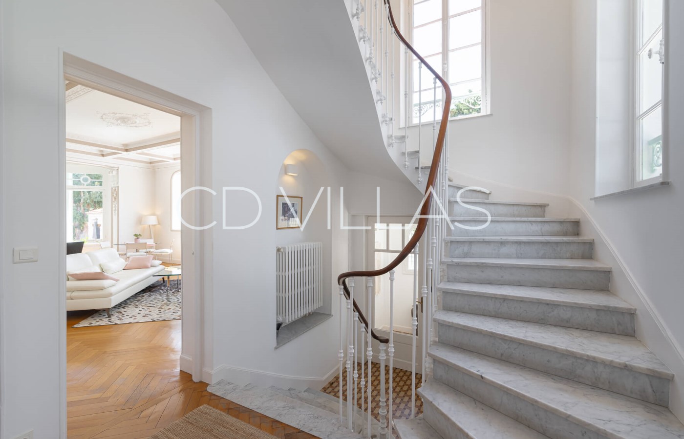 Cette belle villa contemporaine, rénovée avec des prestations de très haute qualité est située sur les hauteurs de Nice à pied de la plage (10 minutes de marche, aussi accessible en bus depuis l'entrée du domaine) et avec accès facile à la vieille ville de Nice. La villa se répartit sur trois niveaux et offre des intérieurs joliment rénovés avec de beaux meubles.