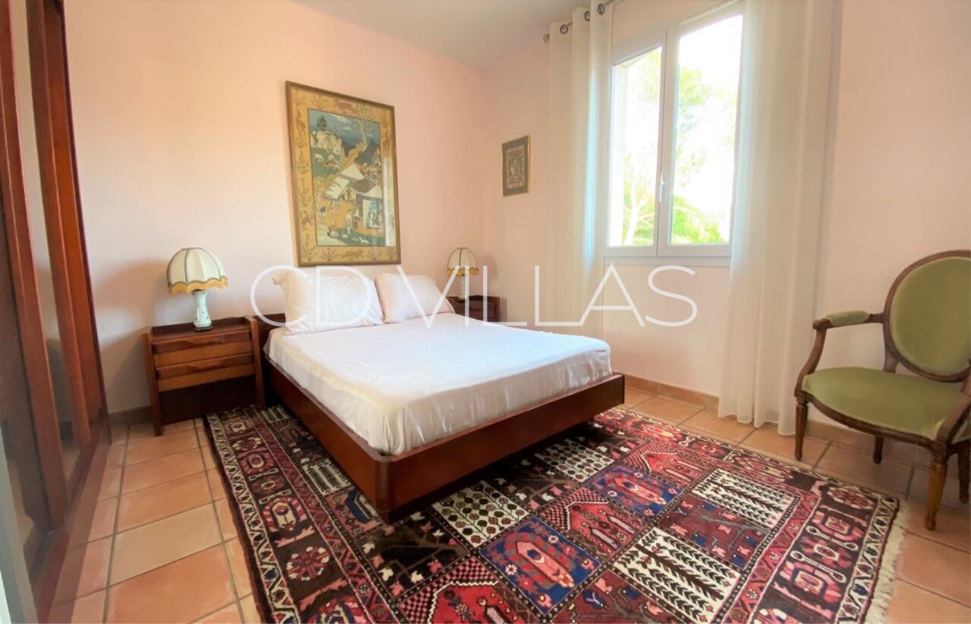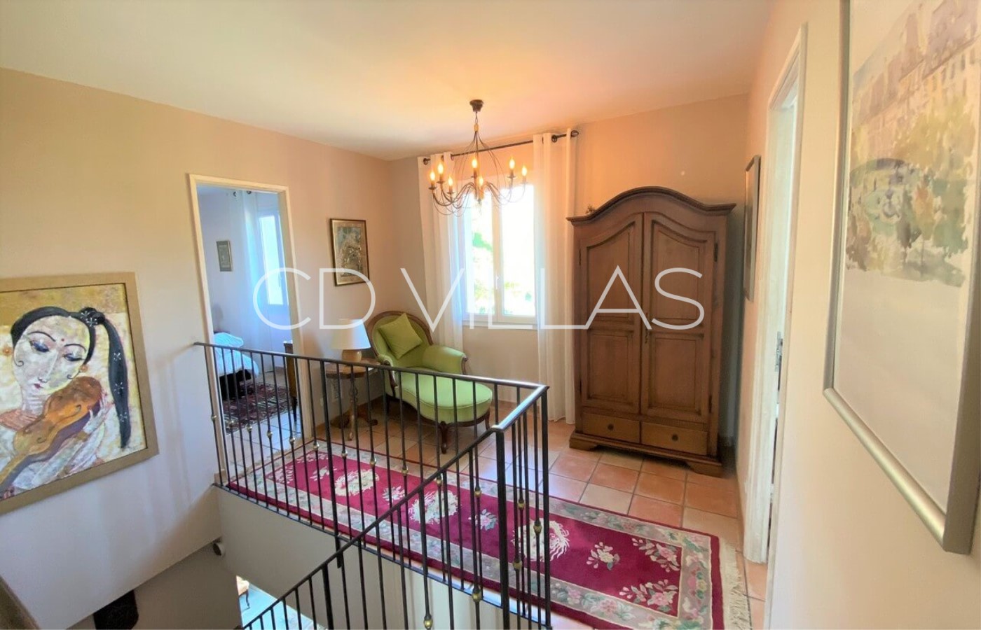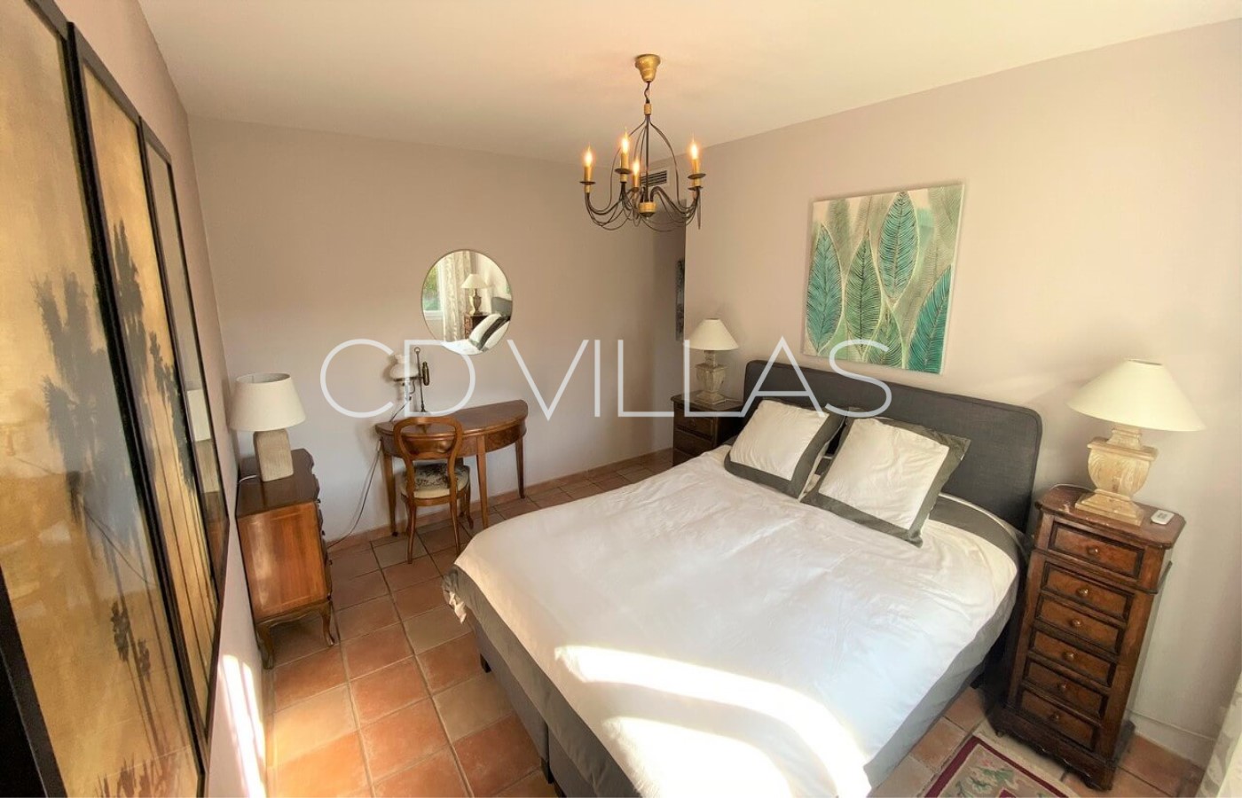 Les 4 chambres sont situées au premier étage avec 3 chambres doubles avec lits 140cm, toutes partageant une salle de bain sur le palier avec douche, baignoire, double vasque et WC séparés. La chambre principale dispose d'un lit queen size, d'une salle de douche attenante avec double vasque, d'un dressing et d'une vue sur la piscine