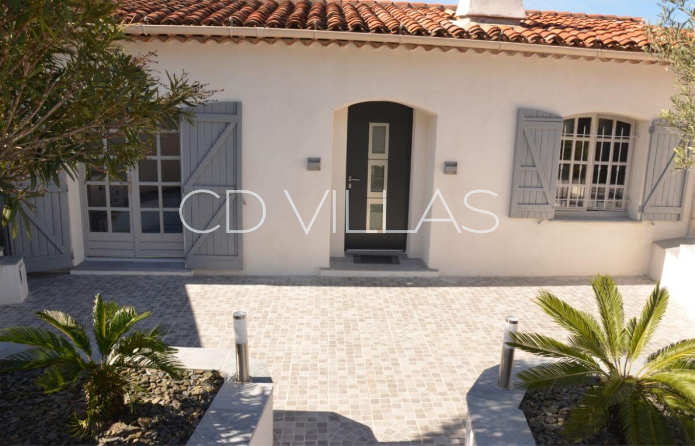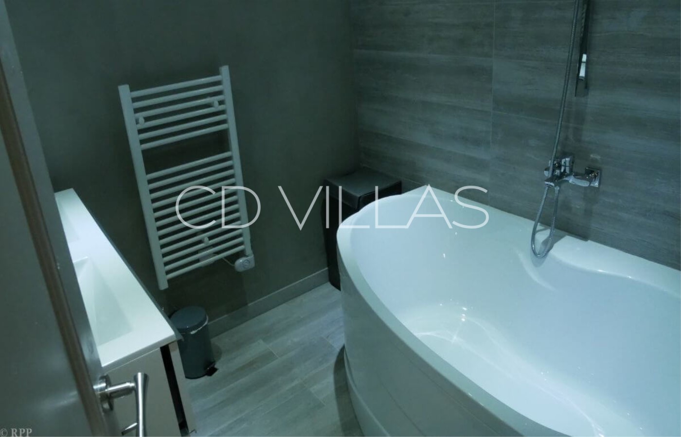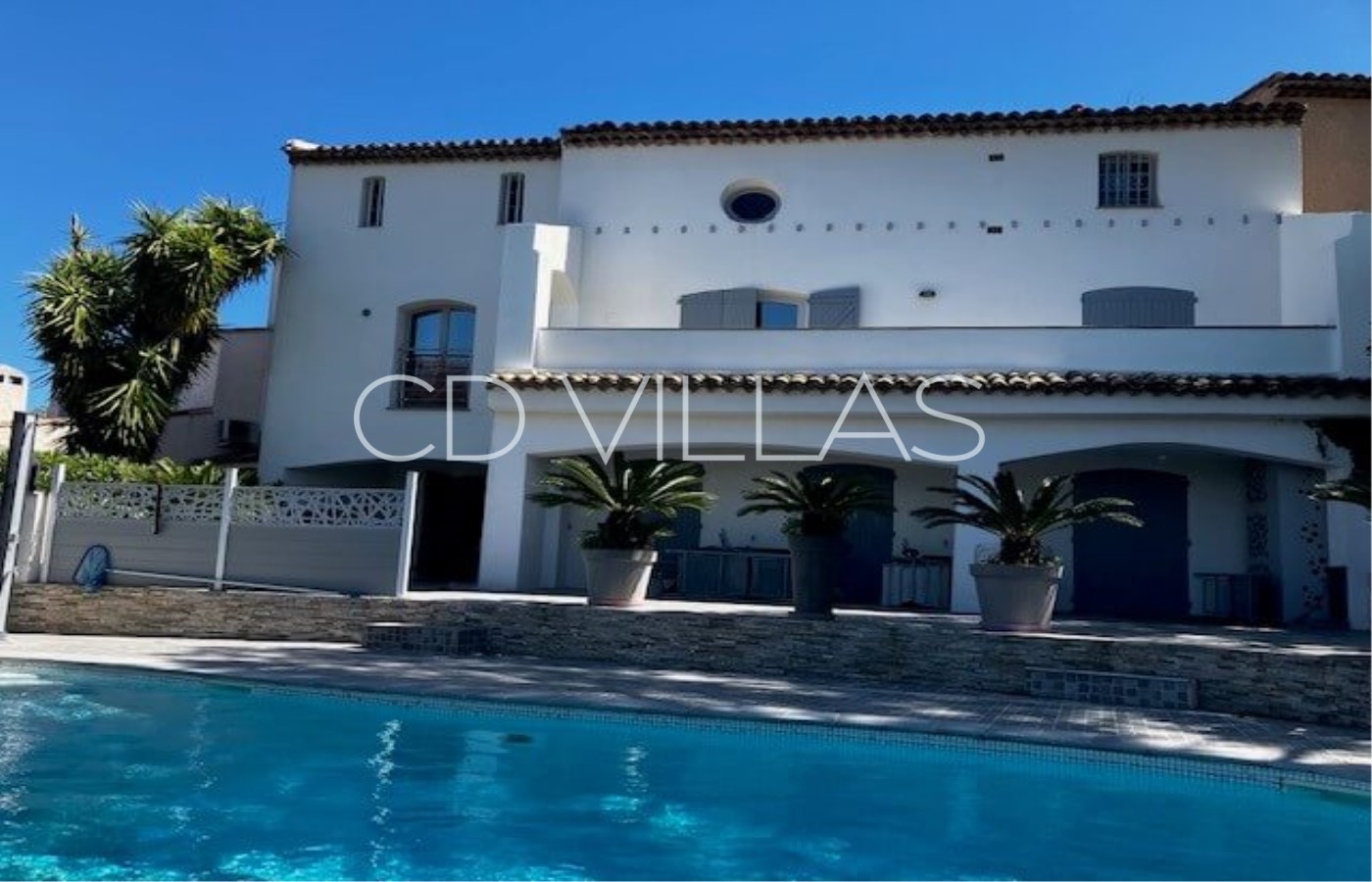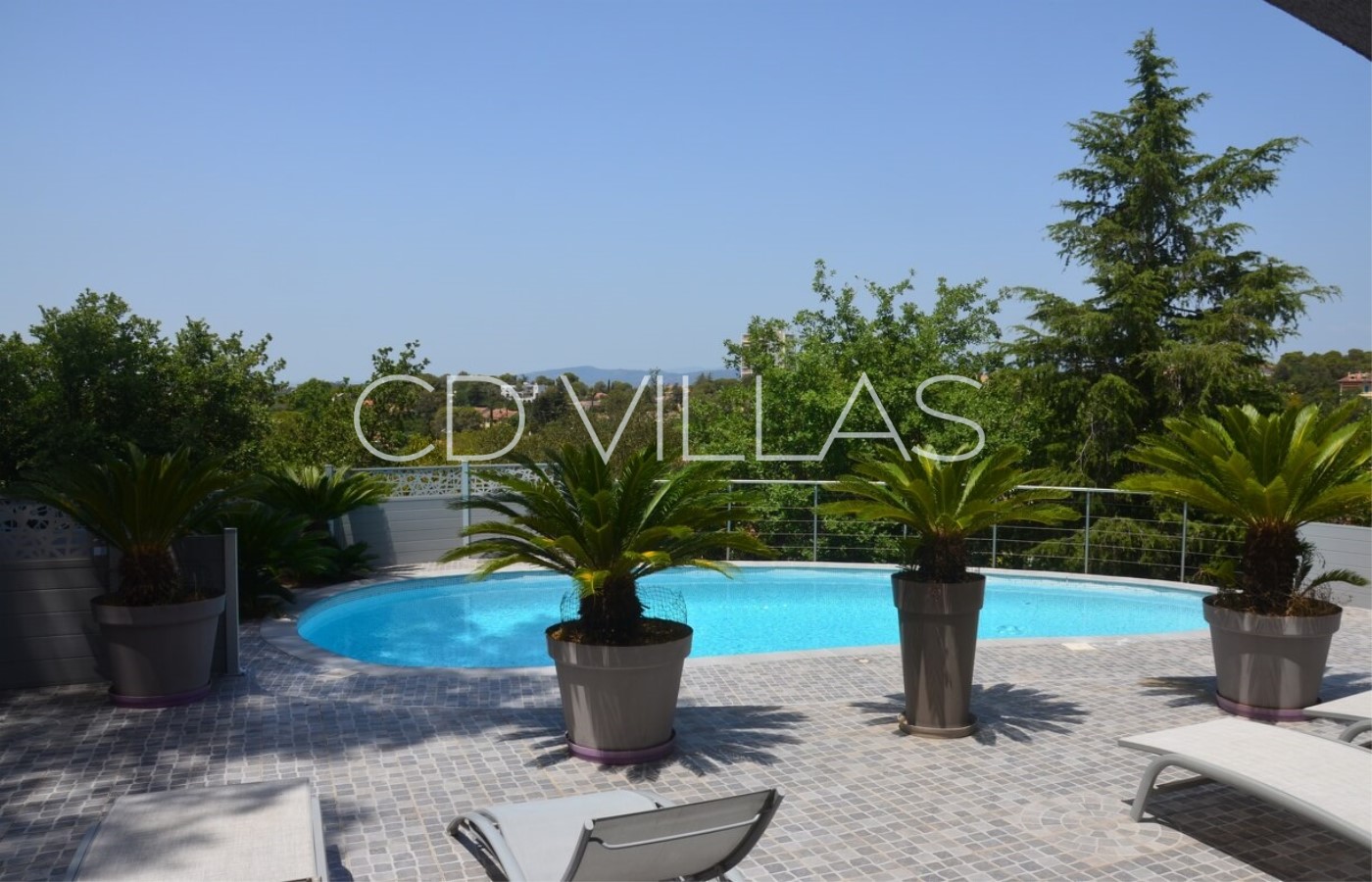 Cet étage donne accès à la salle à manger extérieure avec un BBQ au gaz, 2 salons d'été ombragés et des chaises longues pour profiter des rayons du soleil. La piscine de forme libre est située à ce niveau.