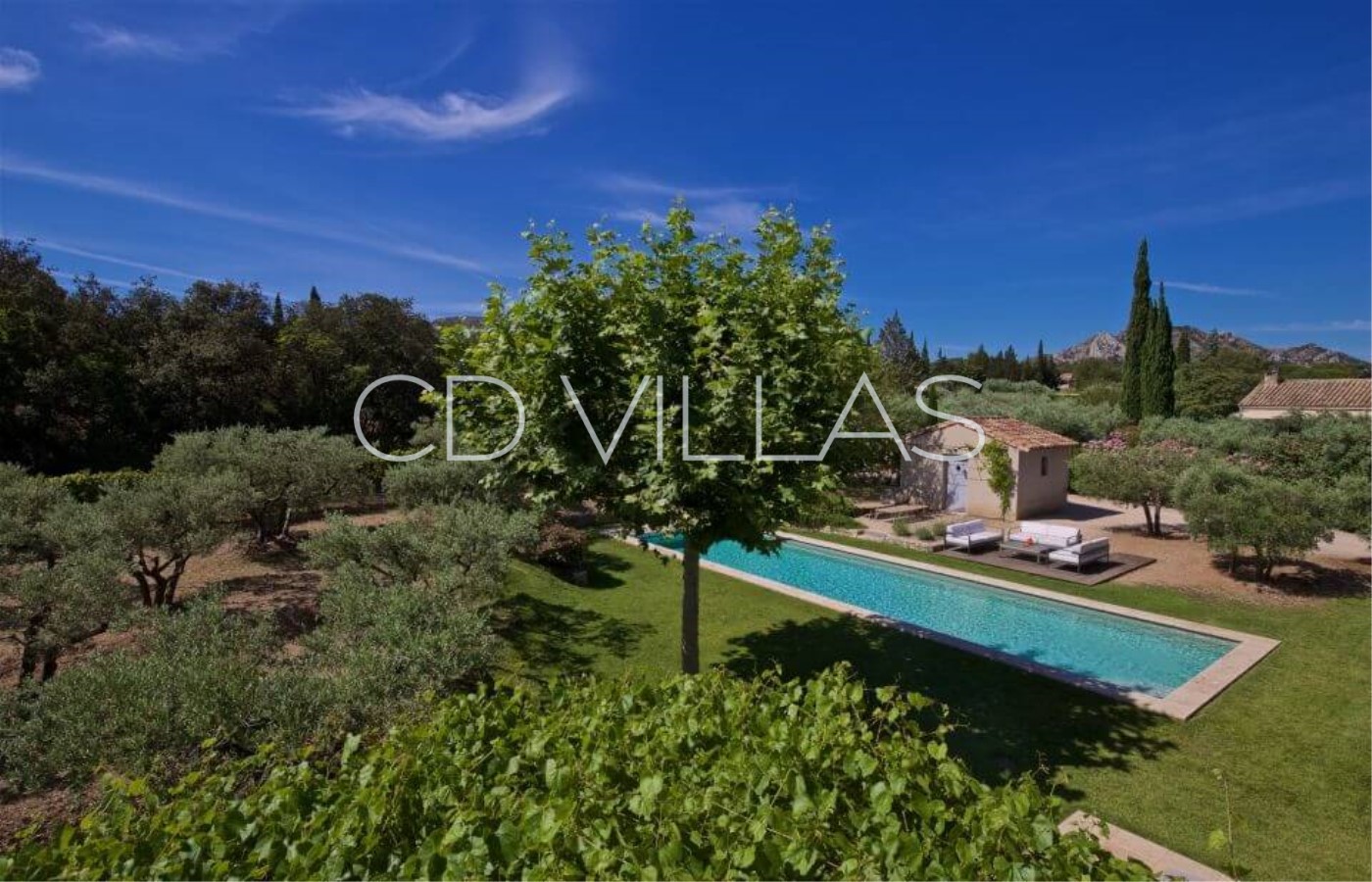 Ce mas de construction récente avec maison d'hôtes attenante peut accueillir jusqu'à 10 personnes et est idéalement situé à quelques pas du joli village d'Eygalières et à seulement 15 minutes en voiture de St-Rémy-de-Provence.