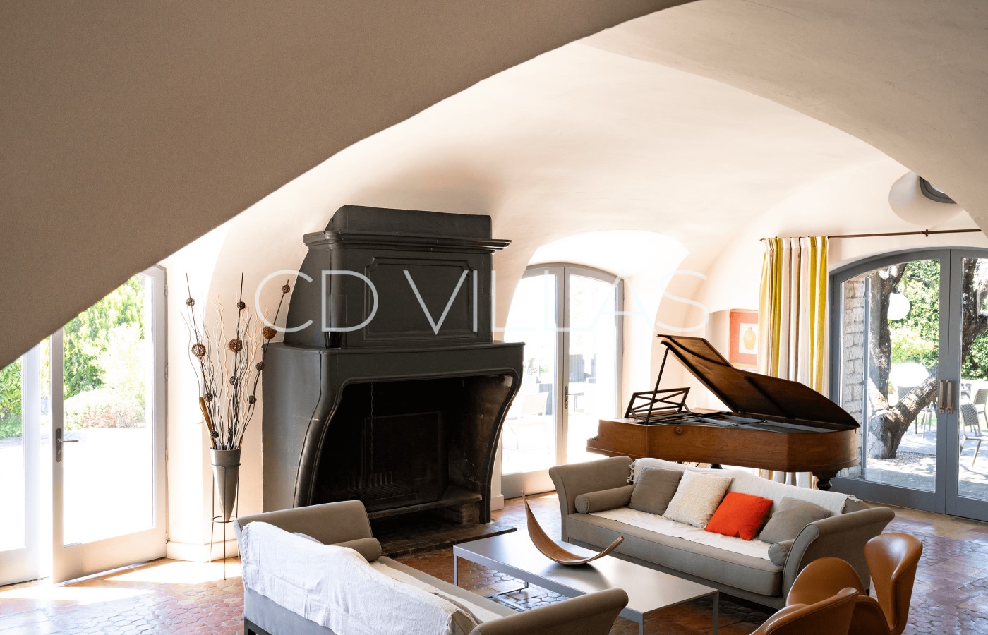 La propriété est très spacieuse avec un salon lumineux à hauts plafonds, des fauteuils confortables et un accès direct à la terrasse et au jardin ainsi qu'un véritable bar à l'ancienne pour votre apéritif du soir. Des boissons sont à disposition et sont à régler à la fin du séjour.