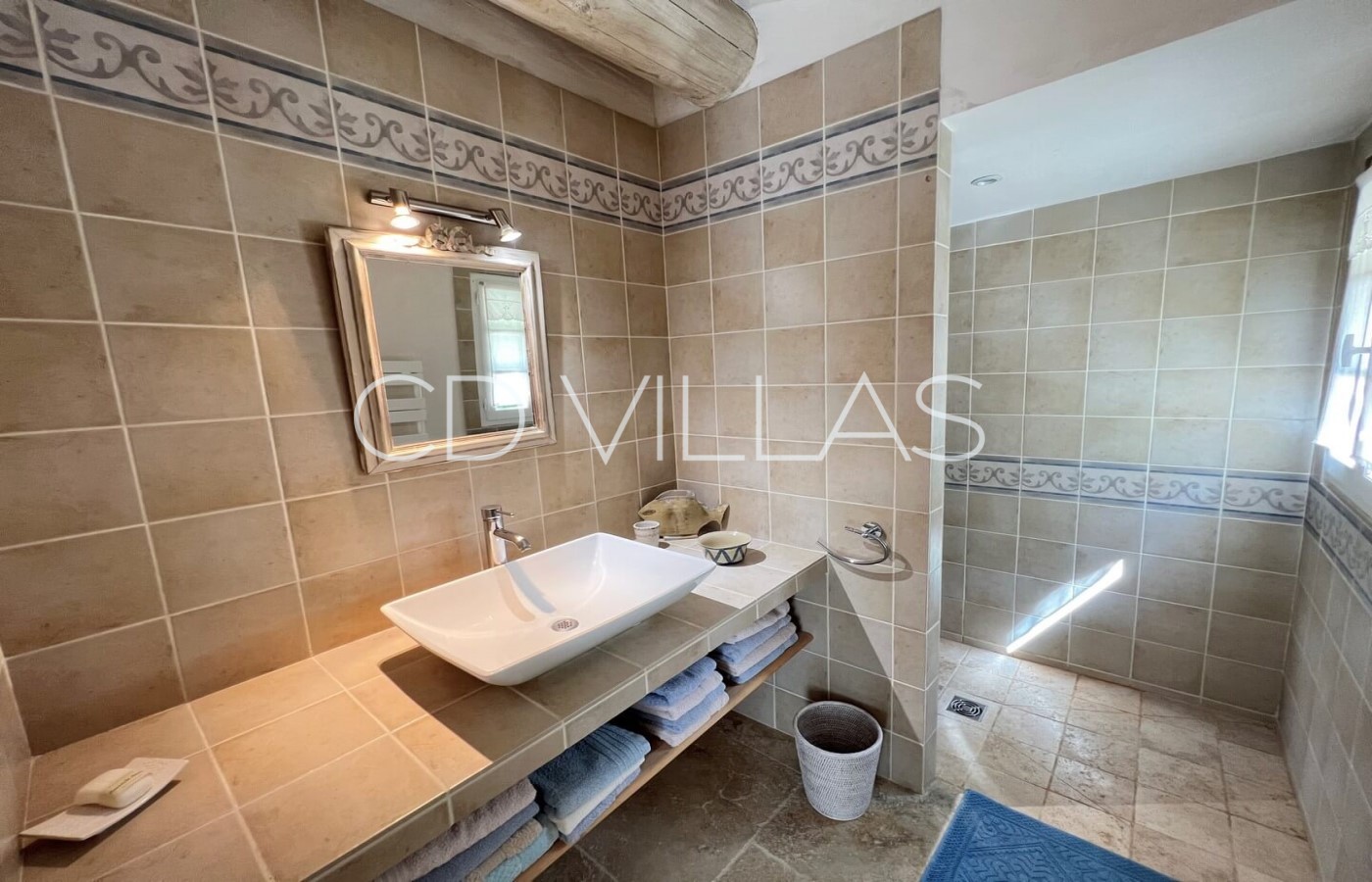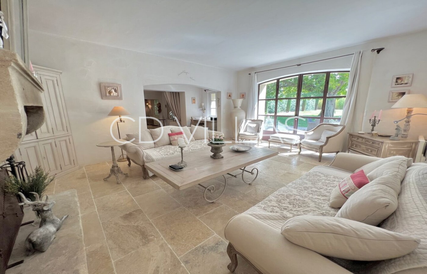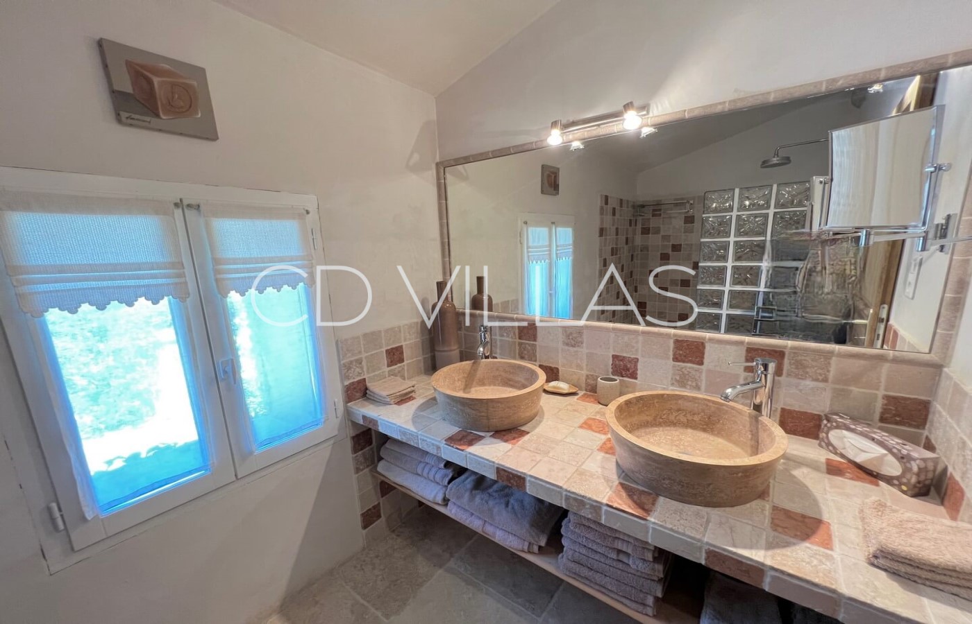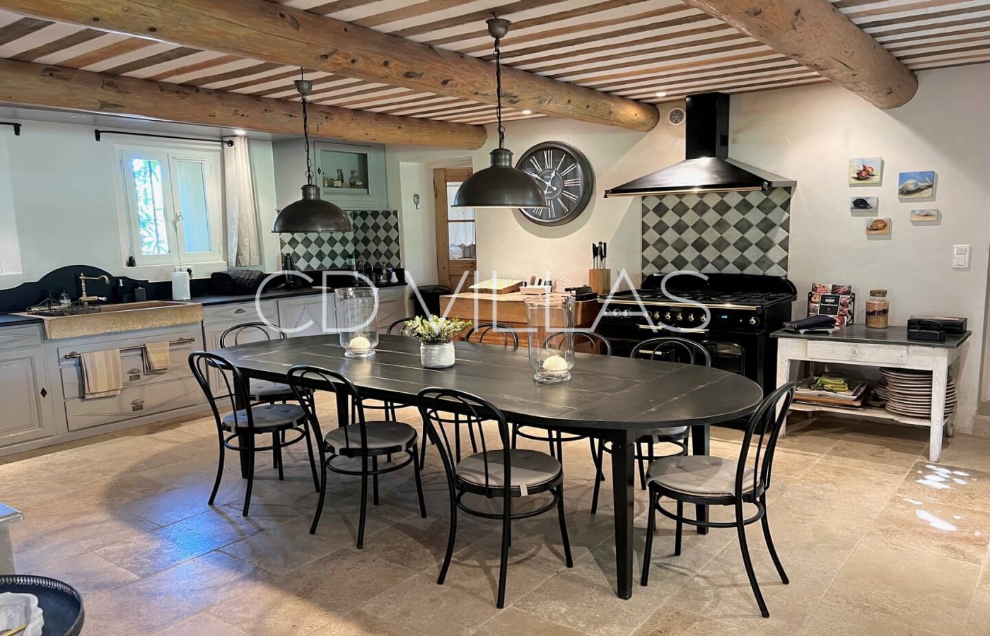 La décoration de la maison est raffinée et élégante dans les tons blancs et beiges. Au rez-de-chaussée vous trouverez un salon avec bibliothèque, un salon avec TV, une salle à manger et une grande cuisine équipée.