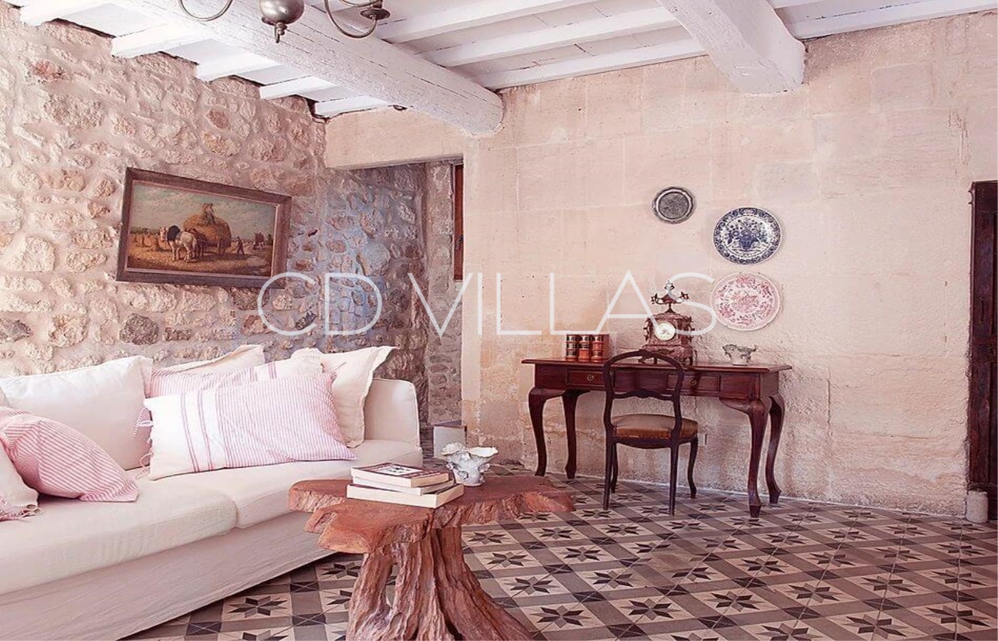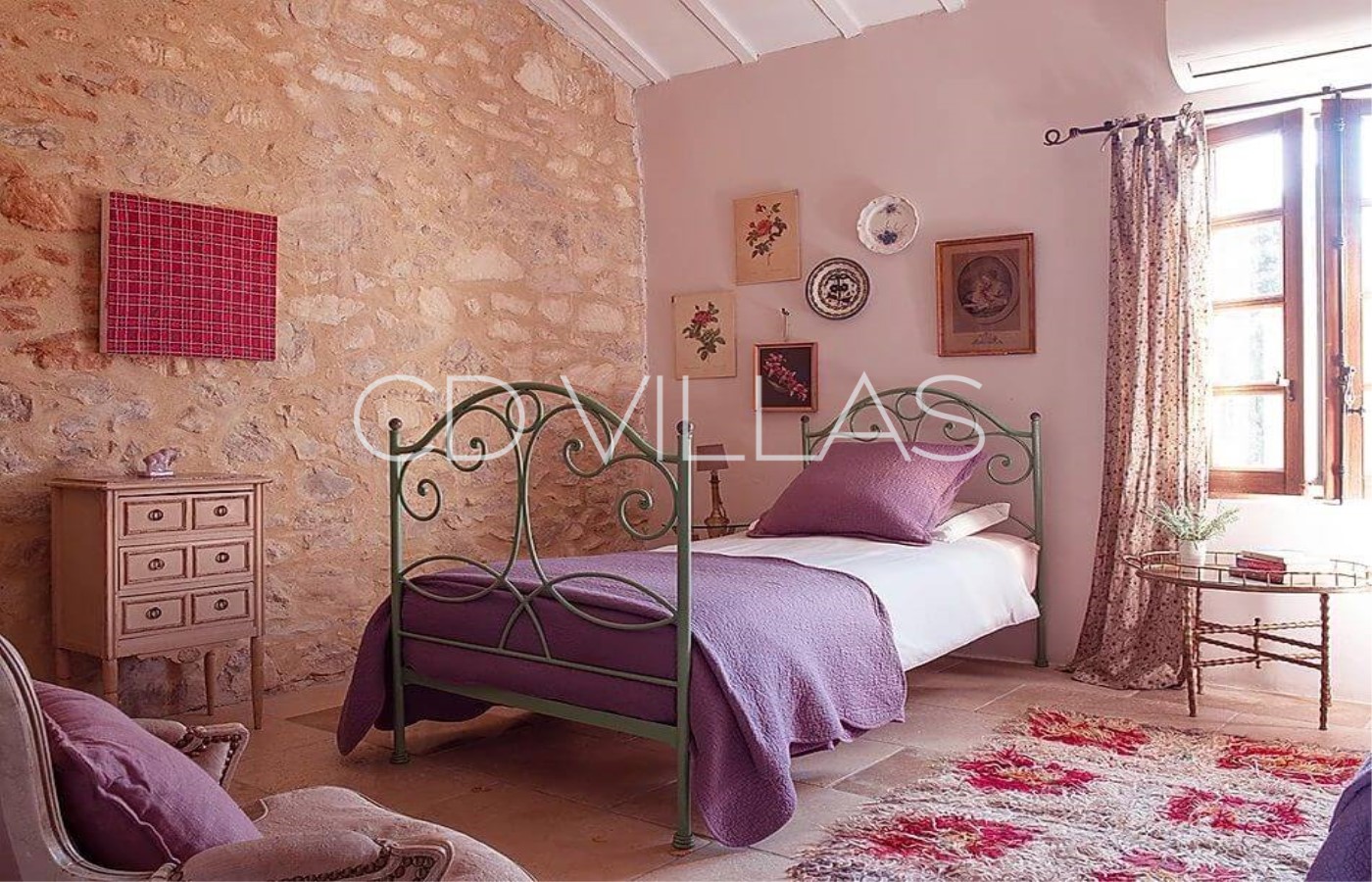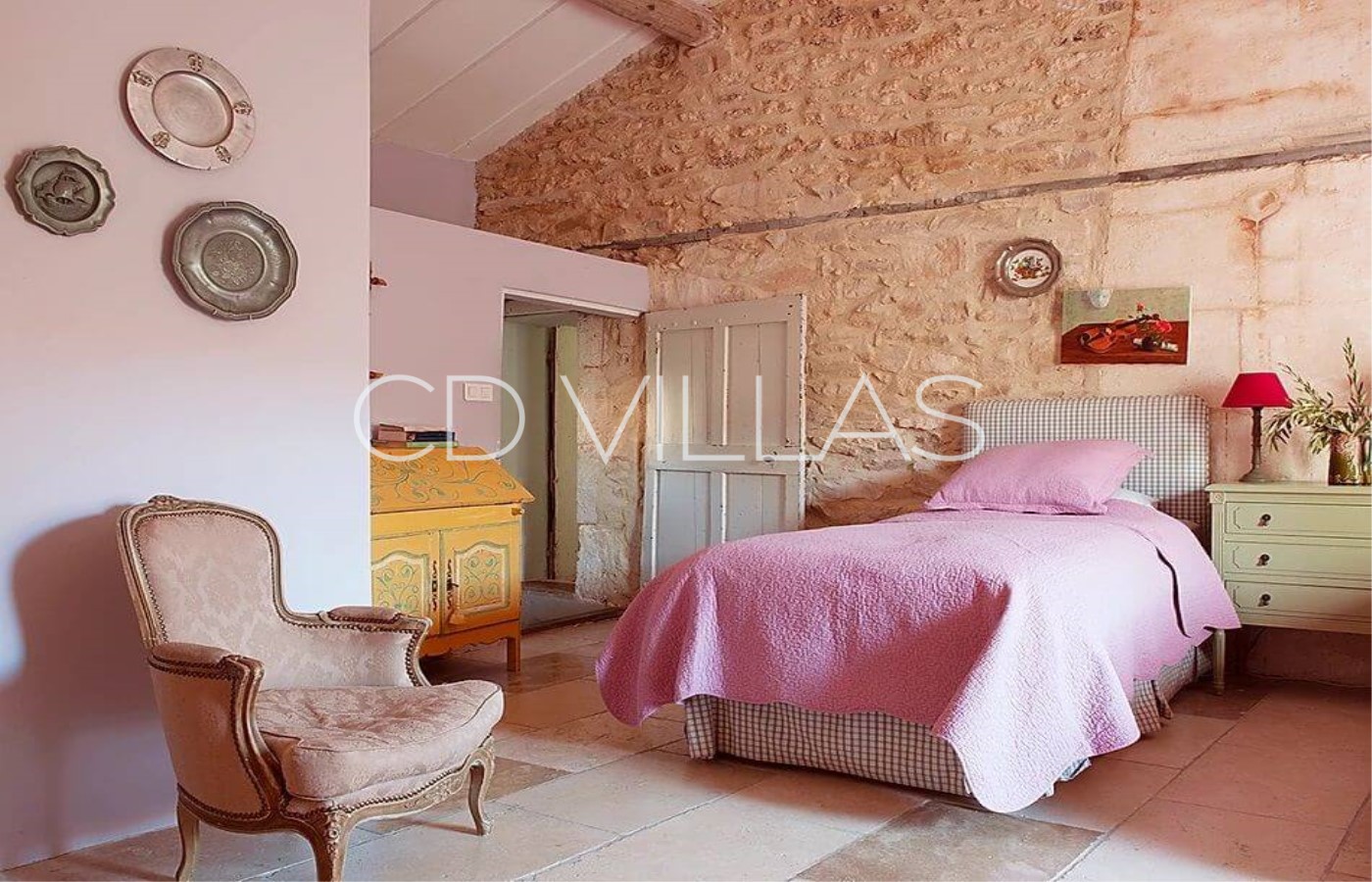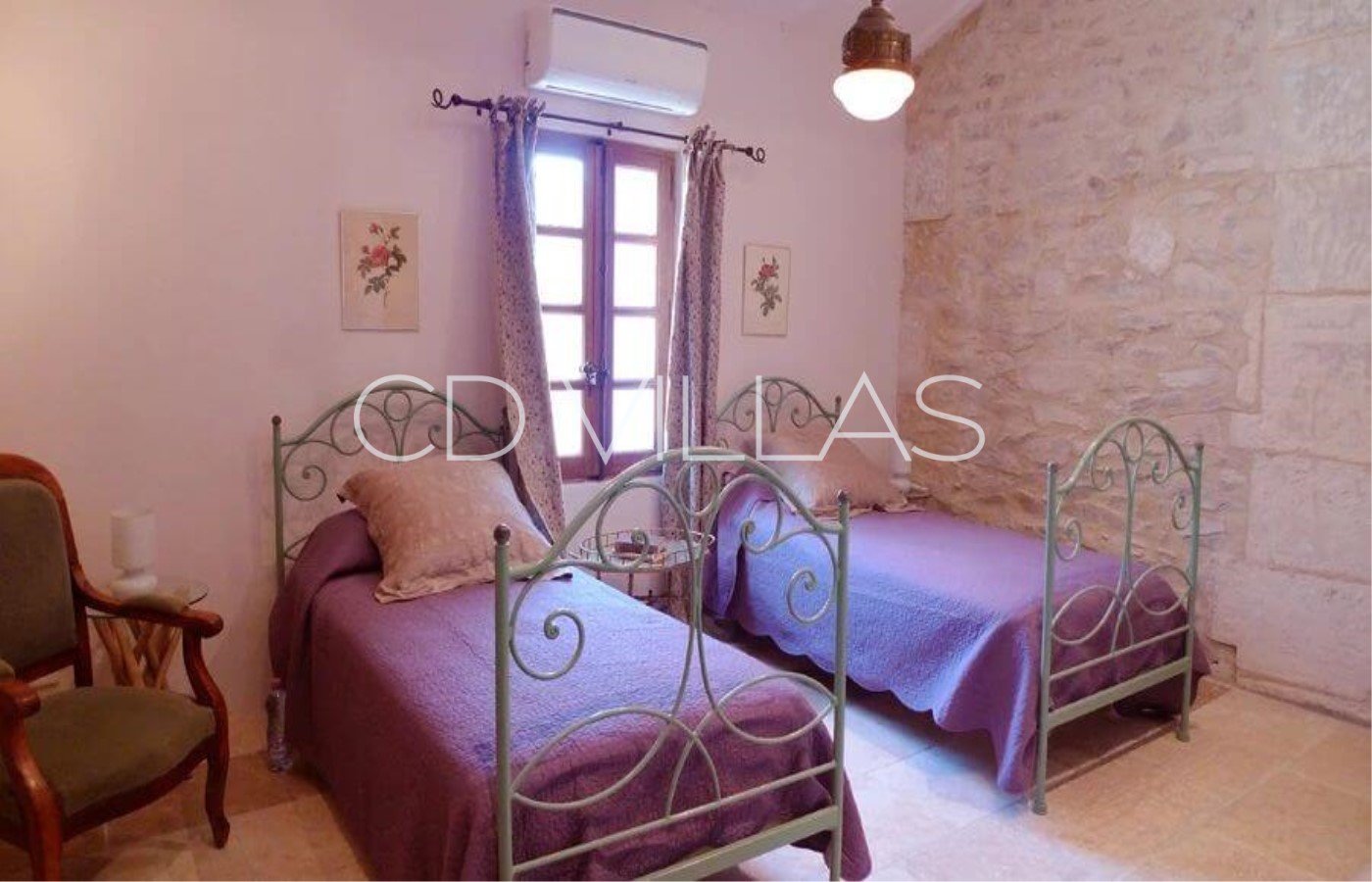 Il y a 4 grandes chambres avec air conditionné et salle de bain privative, pouvant accueillir ainsi confortablement 4 couples dans des lits doubles plus 2 enfants sur des canapés-lits. La chambre principale dispose d'un coin salon avec bureau donnant sur le jardin.