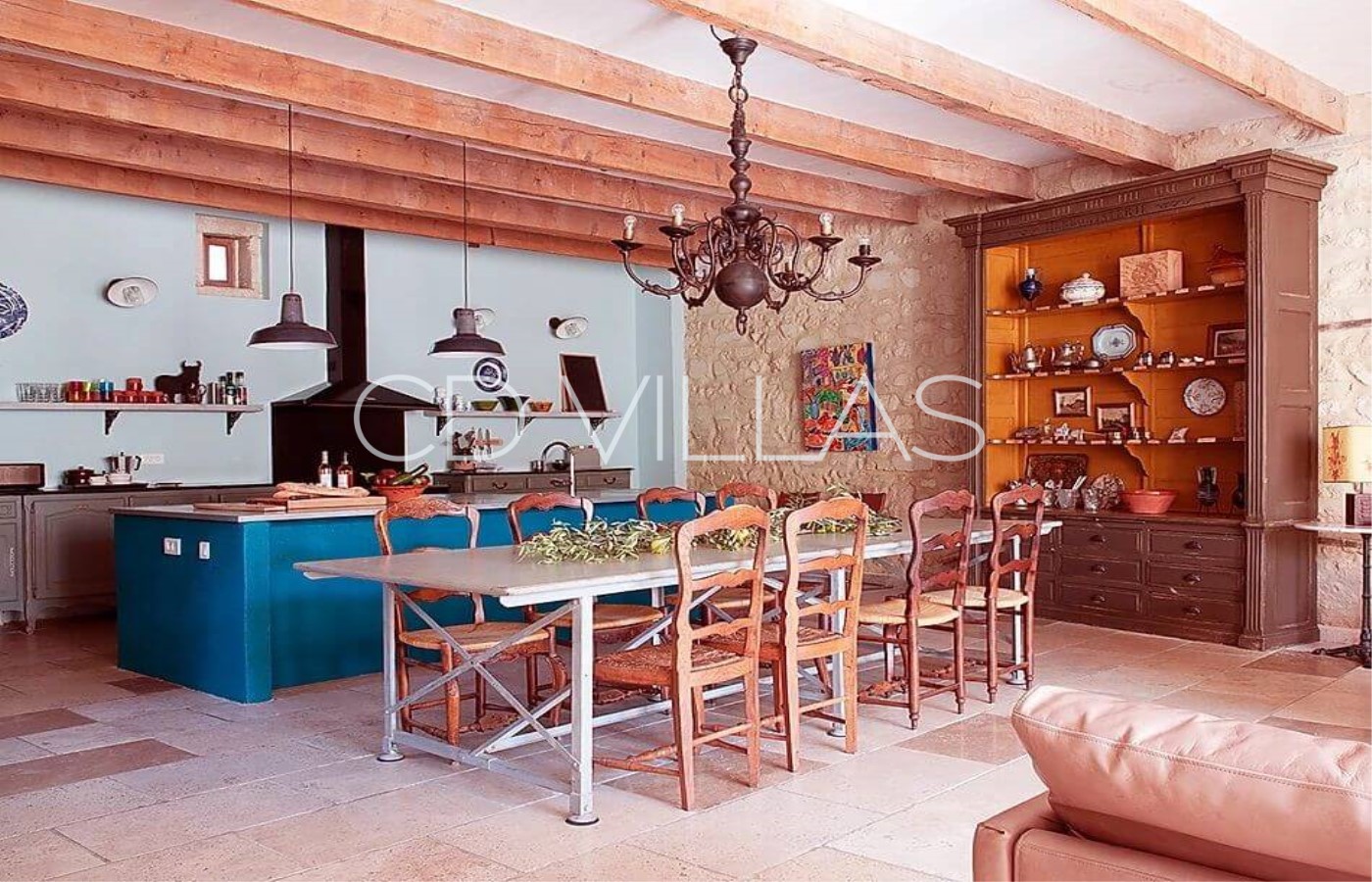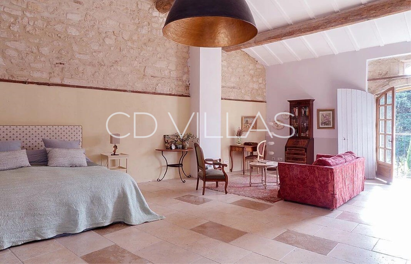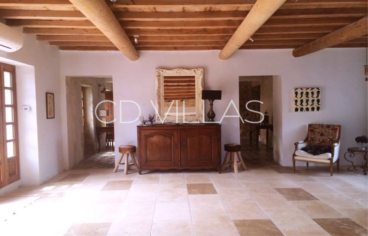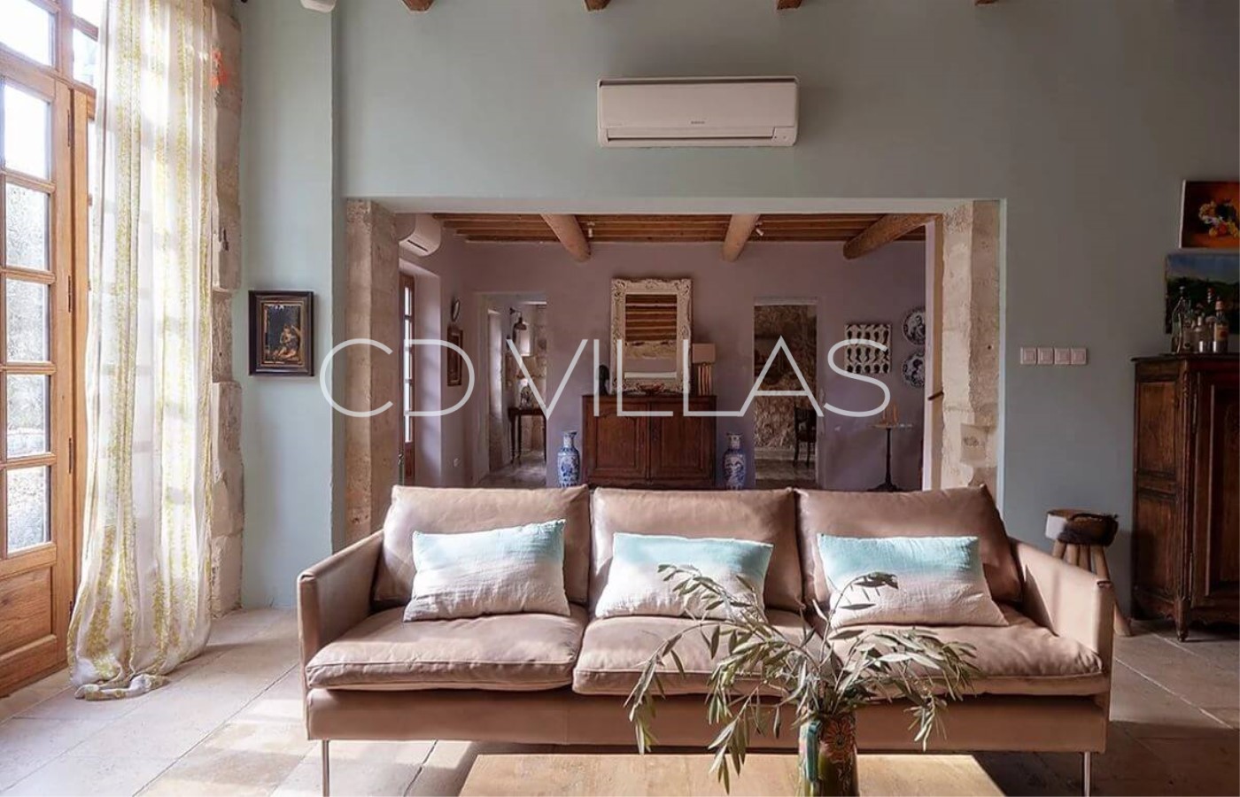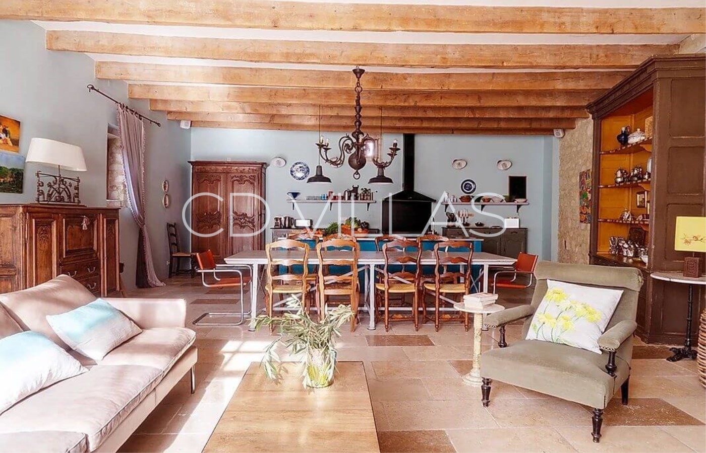 Entièrement restaurée avec des équipements modernes tout en conservant son charme d'antan, la maison dispose de la climatisation dans le grand salon/ salle à manger dont les grandes porte-fenêtres s'ouvrent directement sur le jardin et la piscine.