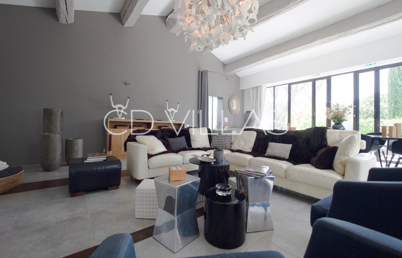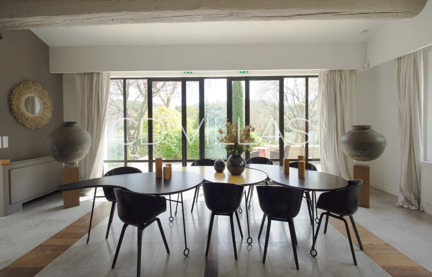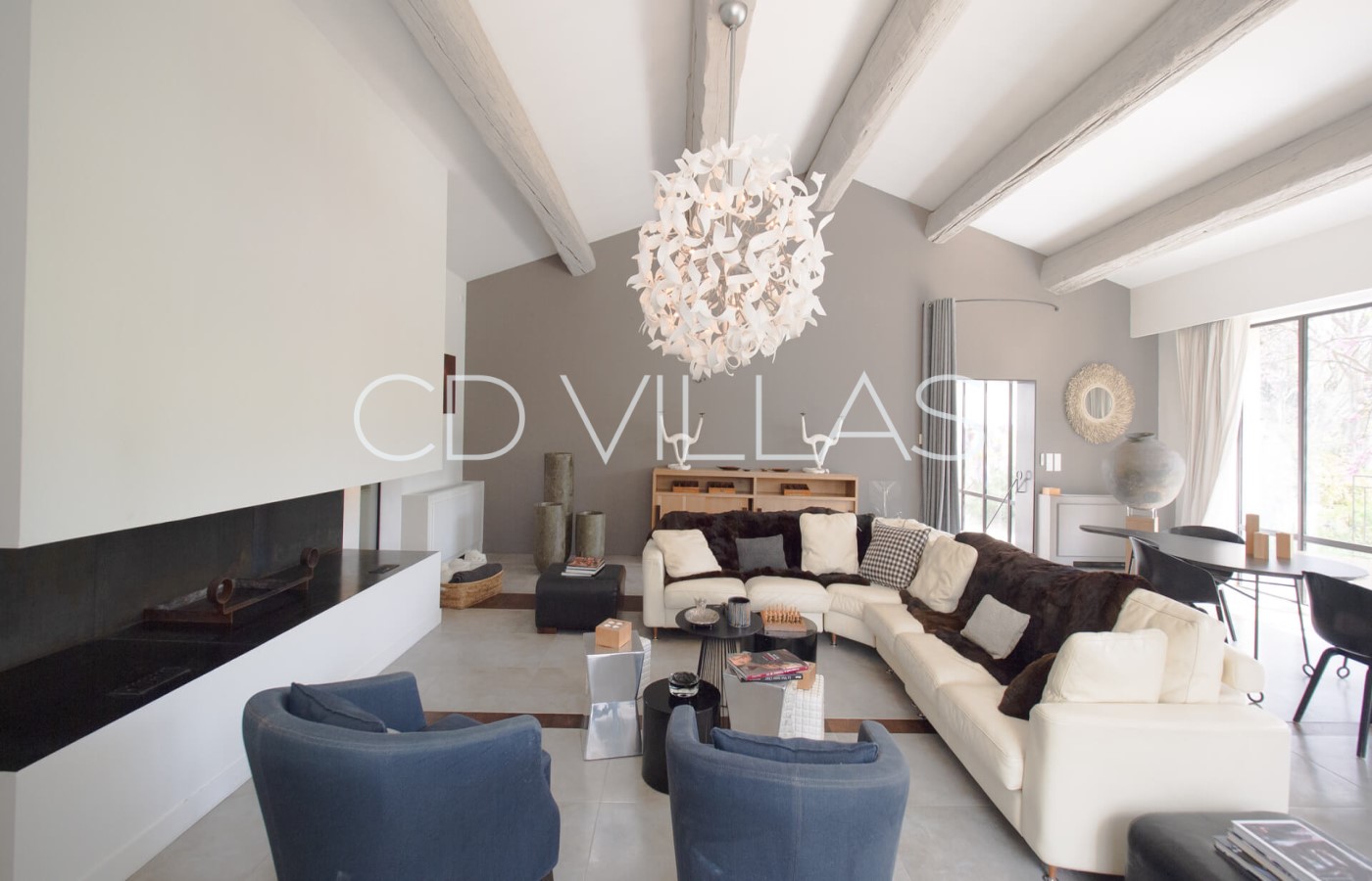 La maison principale bénéficie d'une belle luminosité, d'une décoration moderne et de deux confortables salons. Une chambre est située au rez de chaussée tandis que cinq autres sont à l'étage. Elles possèdent toutes une salle de bain attenante. Cette maison principale possède également une grande salle à manger, une cuisine professionnelle idéale pour accueillir un Chef, une cheminée et un espace de bureau.