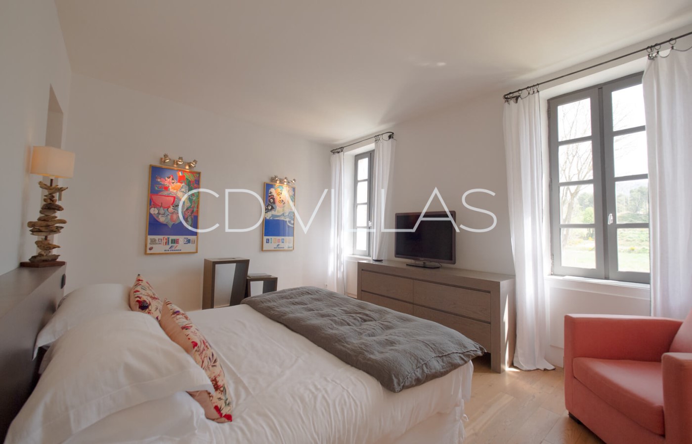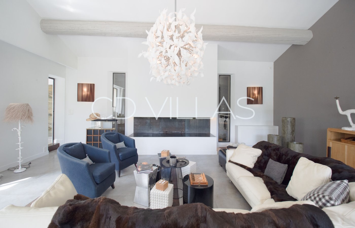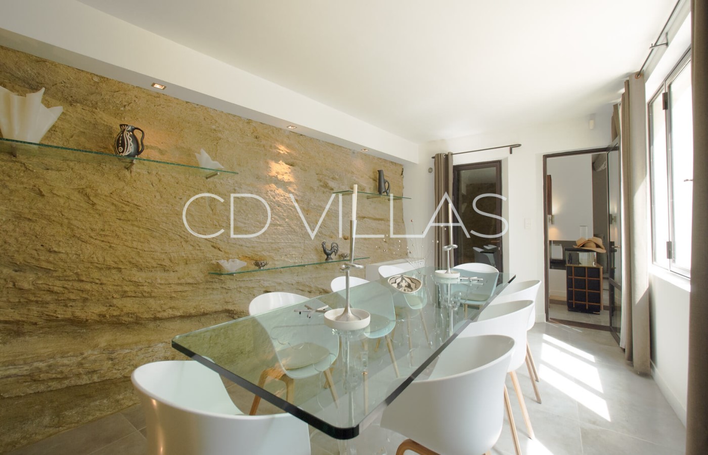 La maison principale bénéficie d'une belle luminosité, d'une décoration moderne et de deux confortables salons. Une chambre est située au rez de chaussée tandis que cinq autres sont à l'étage. Elles possèdent toutes une salle de bain attenante. Cette maison principale possède également une grande salle à manger, une cuisine professionnelle idéale pour accueillir un Chef, une cheminée et un espace de bureau.
