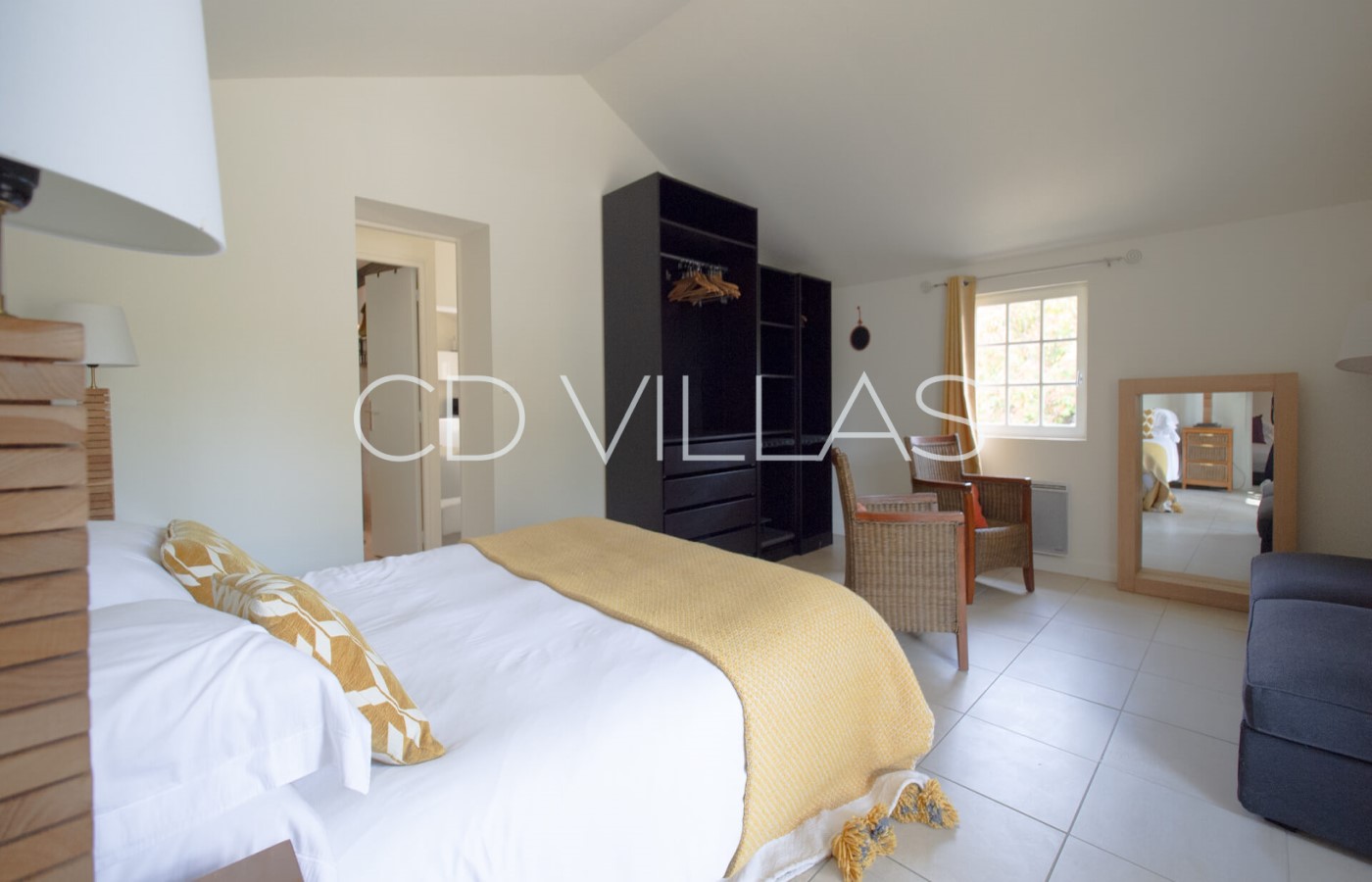 Chambre 3 - Grand lit double avec terrasse privée et salle de bain attenante (baignoire, douche italienne, grand évier, WC séparés)