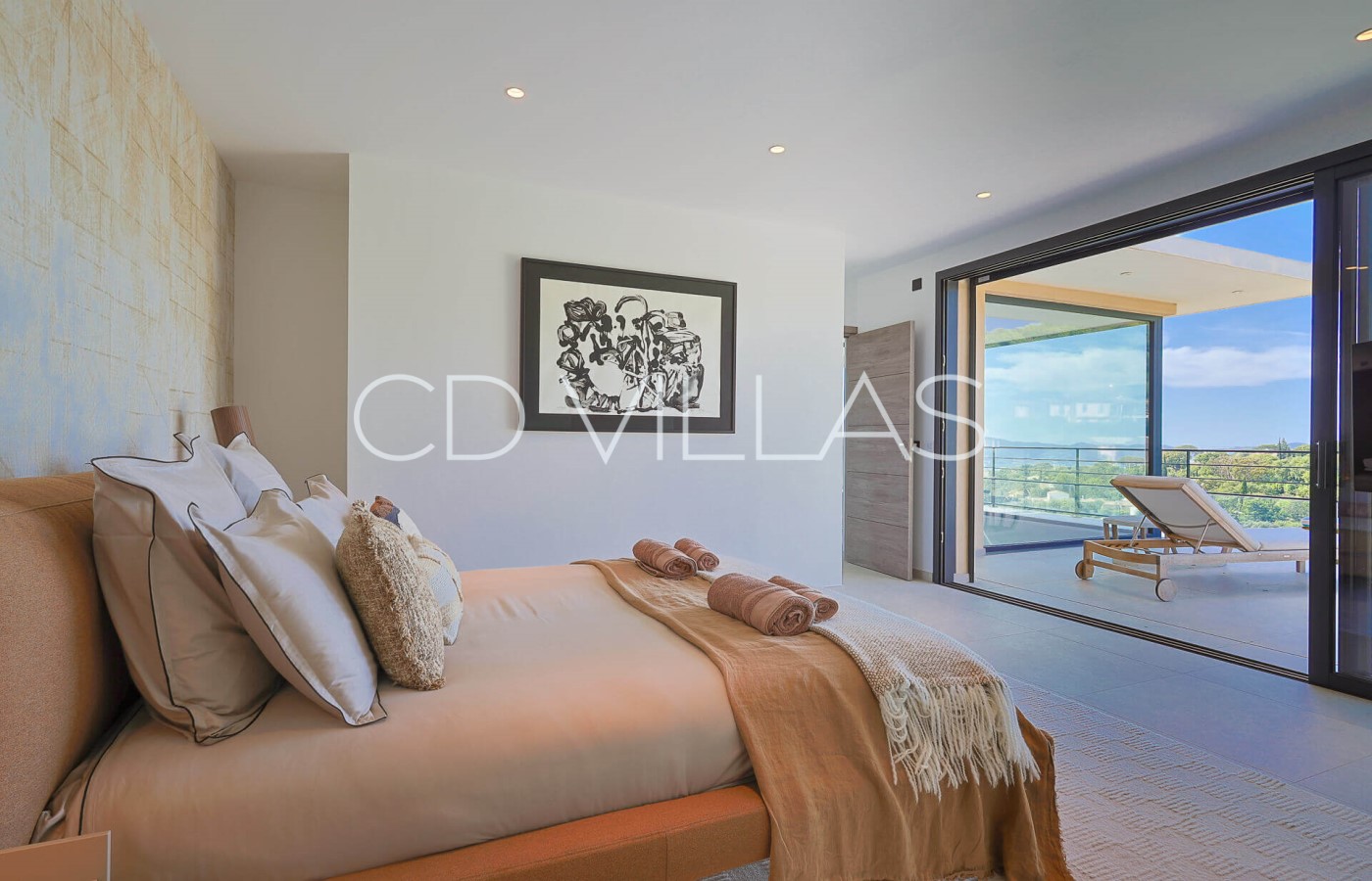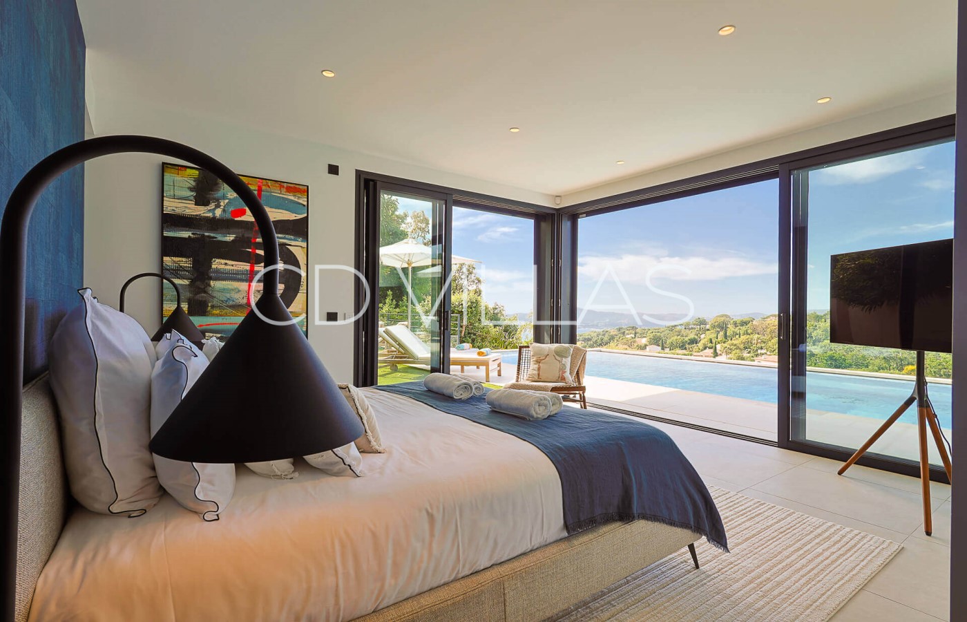 Chambre de maitre - 1 Grand Lit Double, avec salle de bain et WC ensuite Accès direct à une terrasse et à la piscine