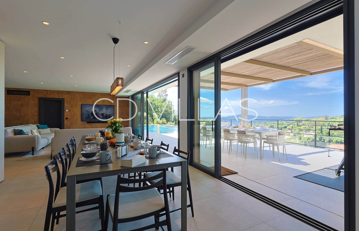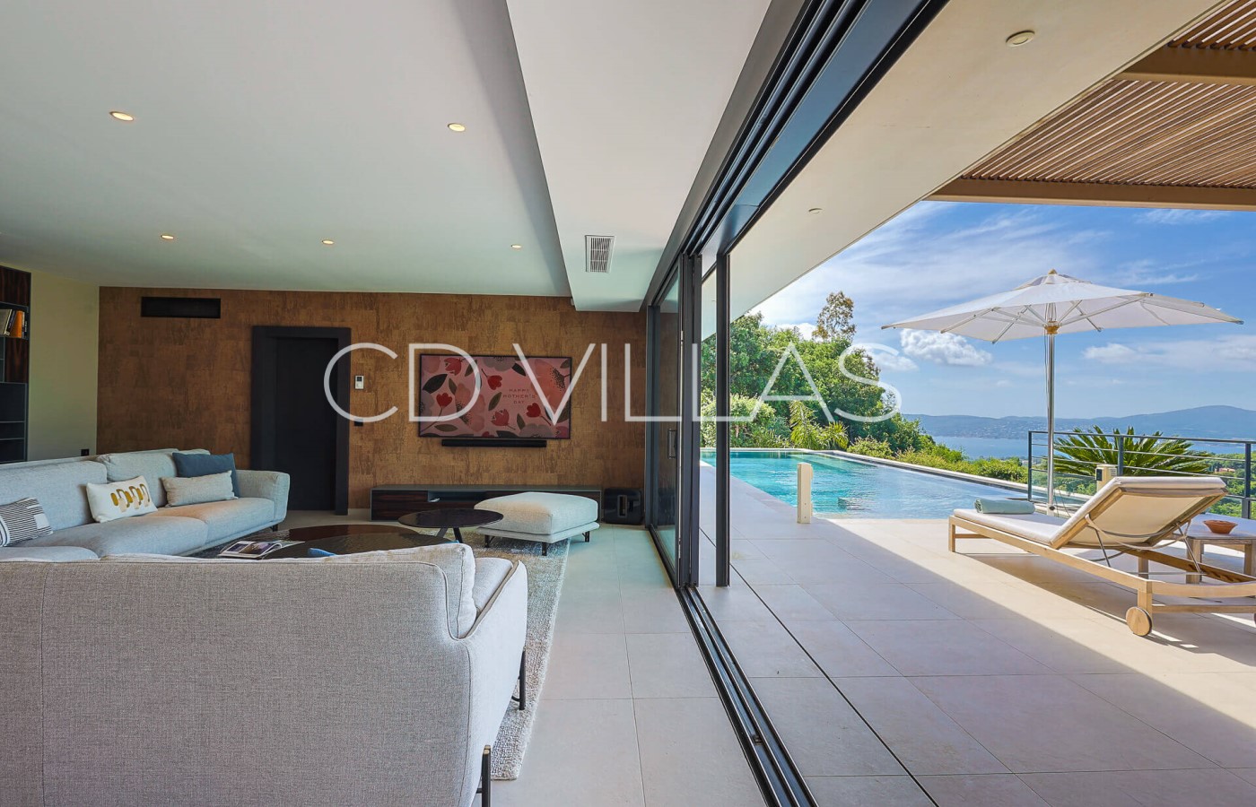 Salon - grand salon ouvert sur la terrasse et la piscine donnant une sensation dedans-dehors