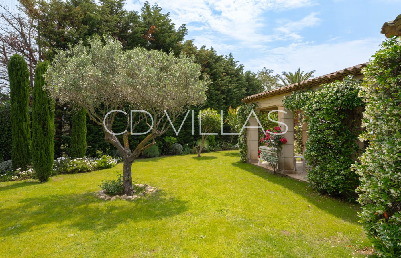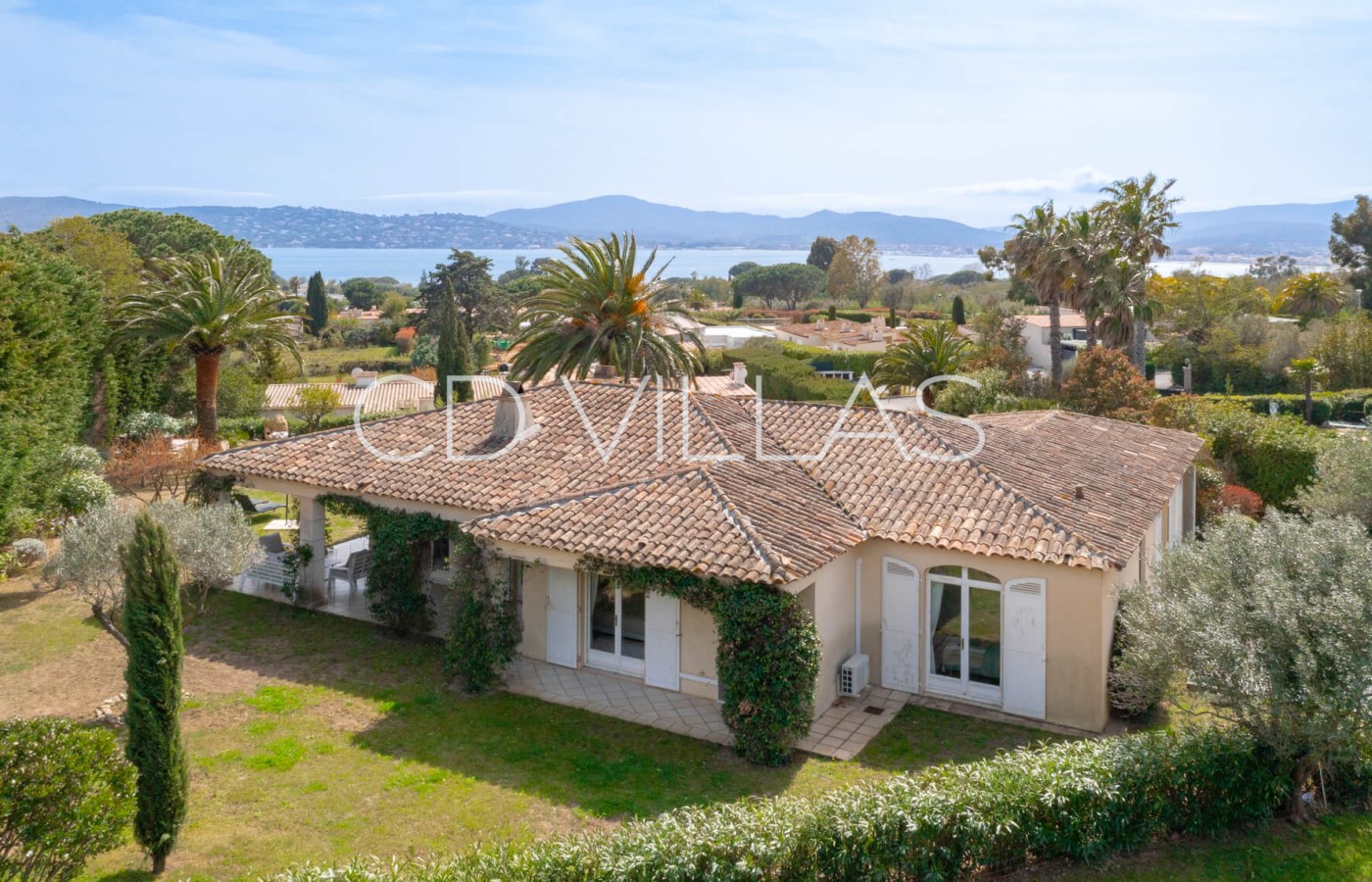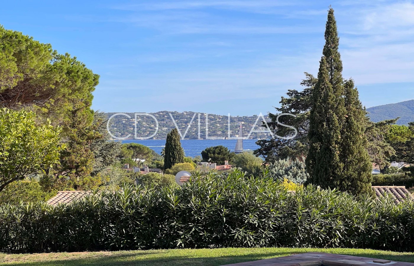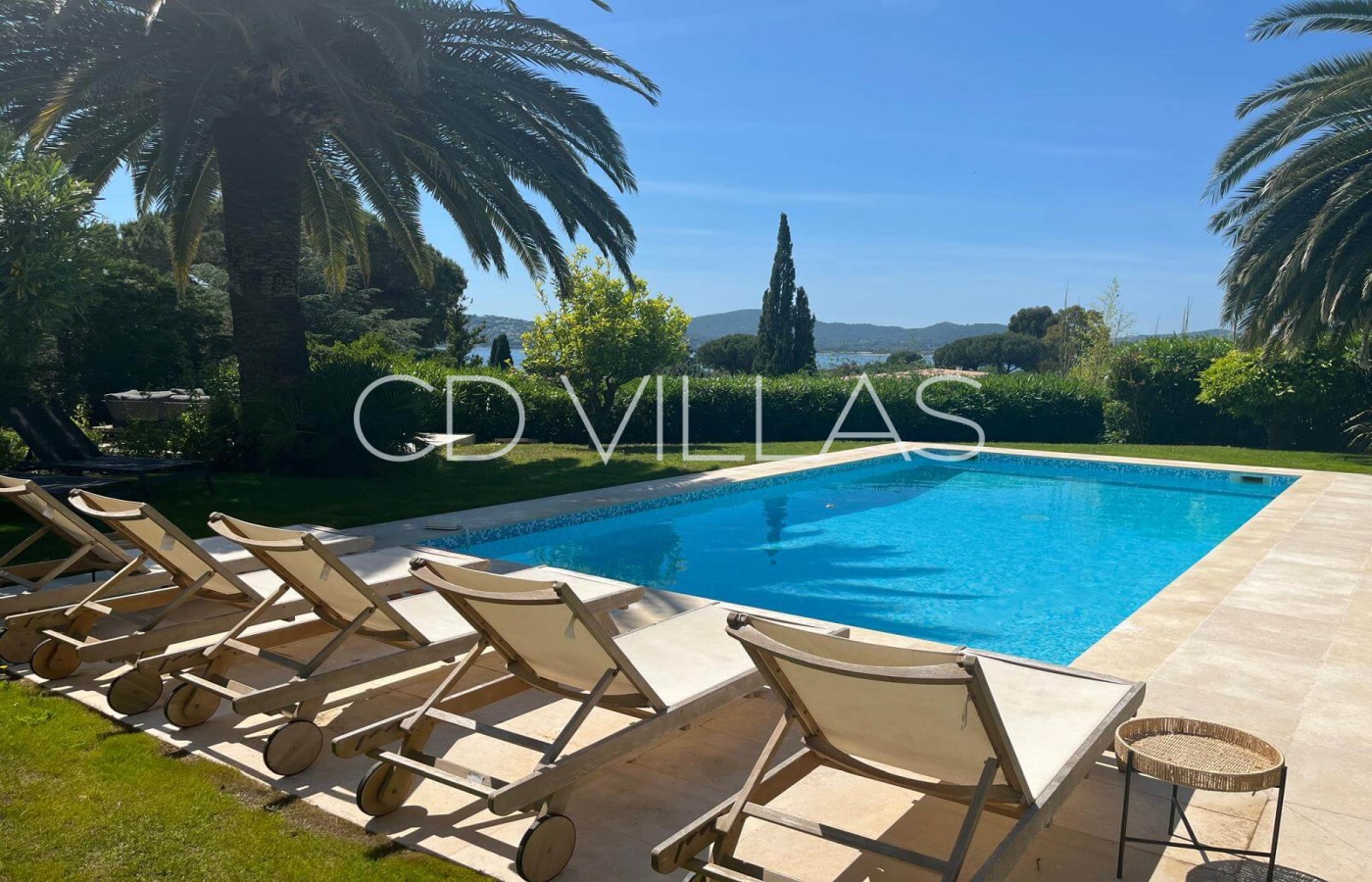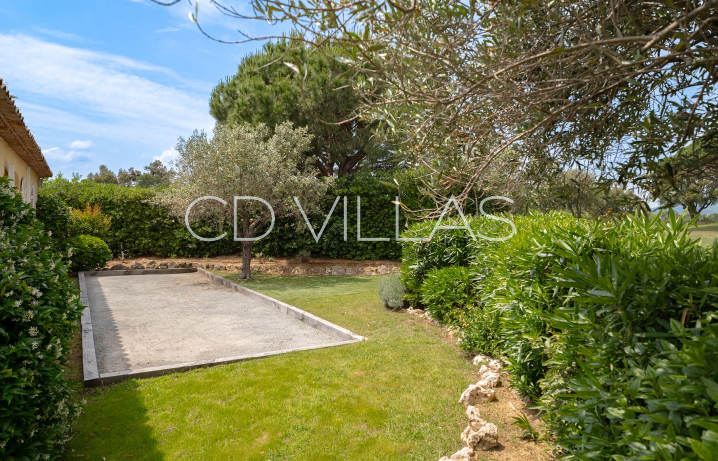 Il y a un grand jardin avec piscine surplombant la baie de Saint Tropez, ainsi qu'un terrain de boules.