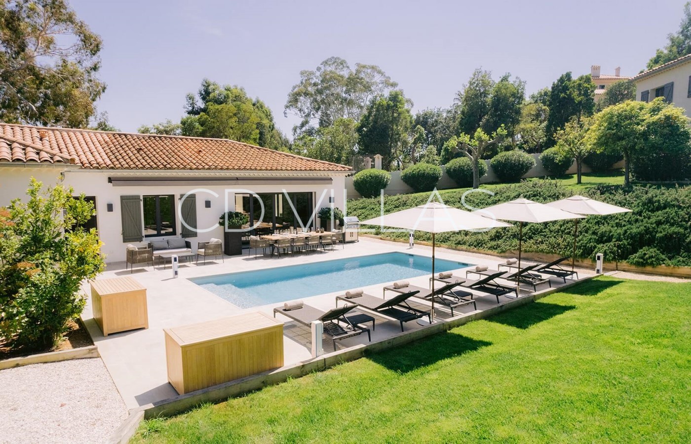 La propriété offre de grandes terrasses autour d'une piscine chauffée, un salon d'été, un coin repas avec barbecue à gaz et des chaises longues pour faire une sieste ou bronzer sous le soleil du sud de la France.