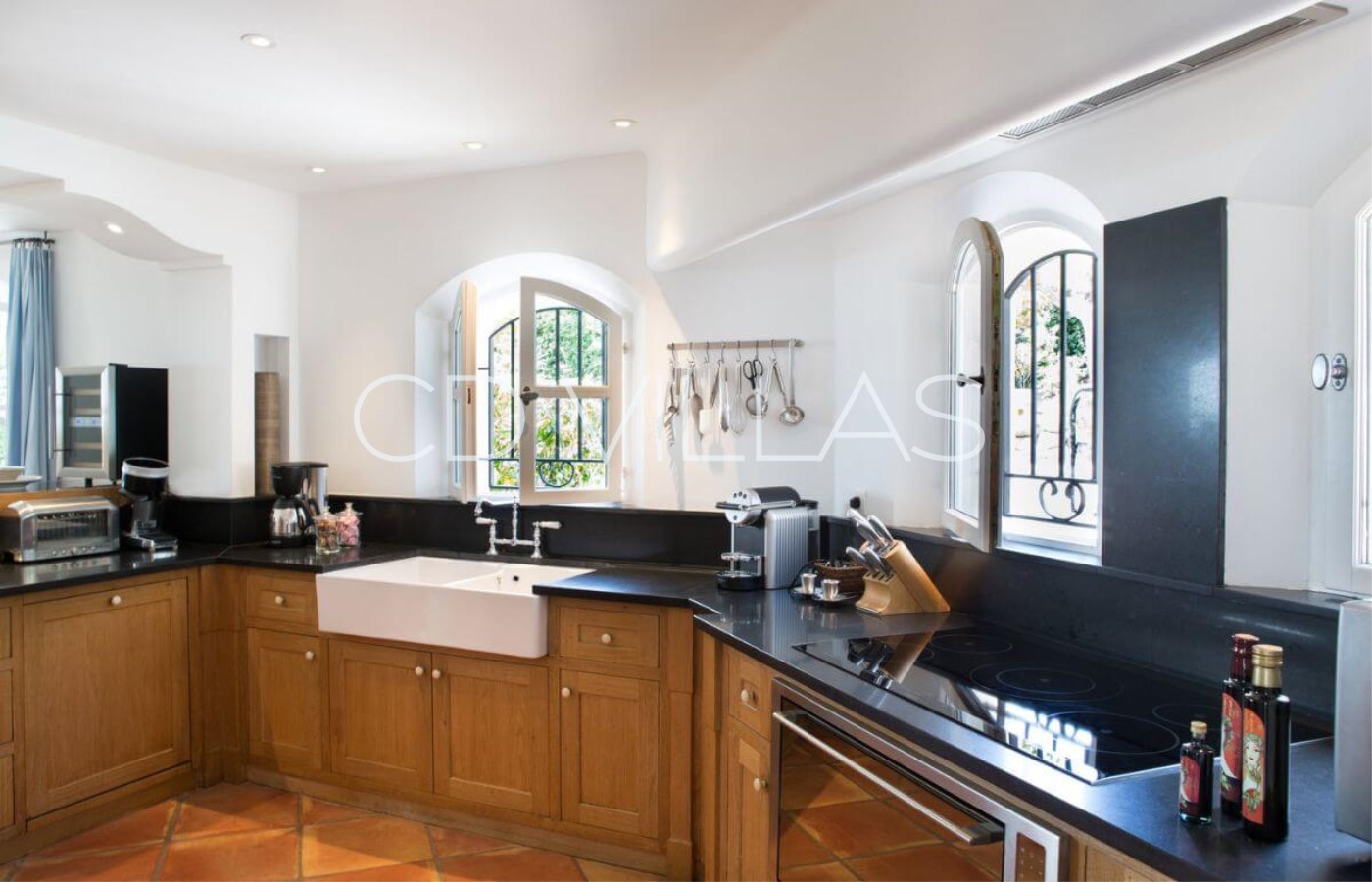 Cuisine - entièrement équipée en électroménager haut de gamme : lave-vaisselle, four, plaques induction, micro-onde, réfrigérateur/congélateur, cave à vin, cafetière Nespresso. Sélection de vins, de boissons gazeuses et de boissons chaudes