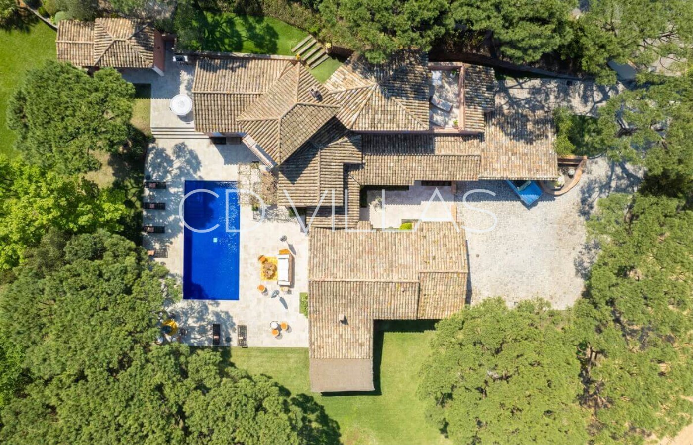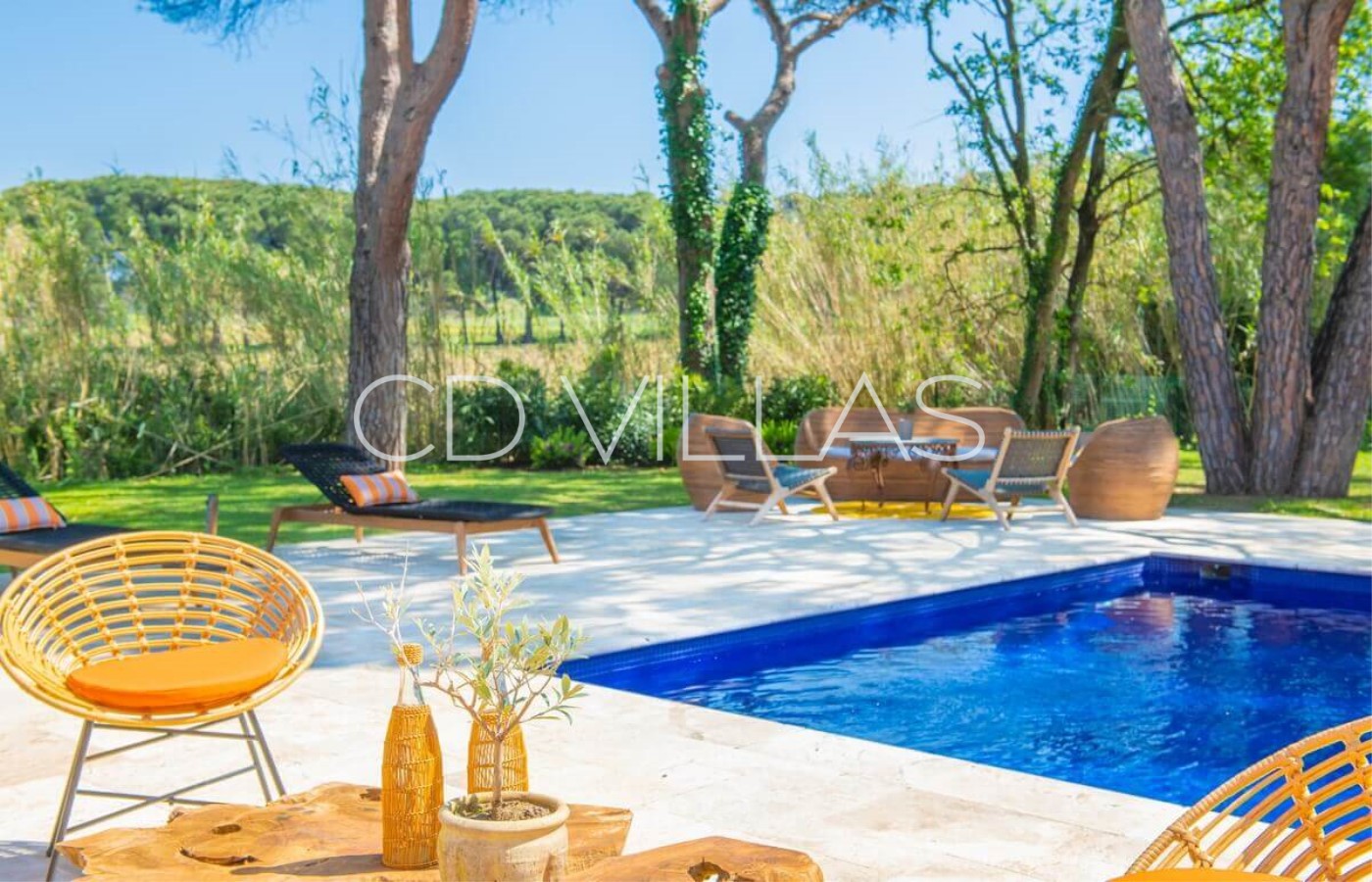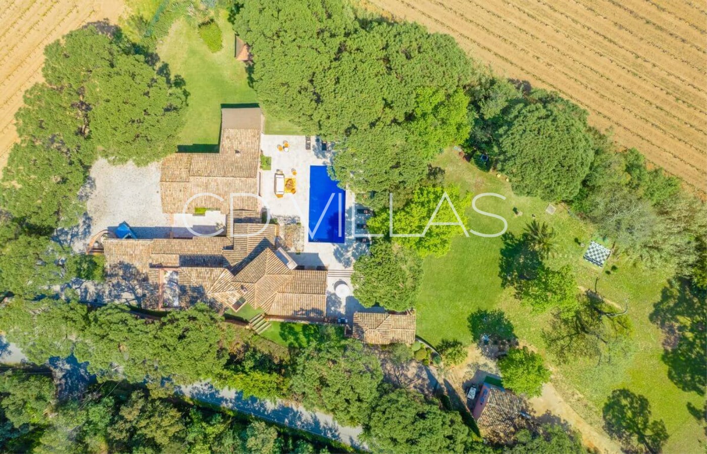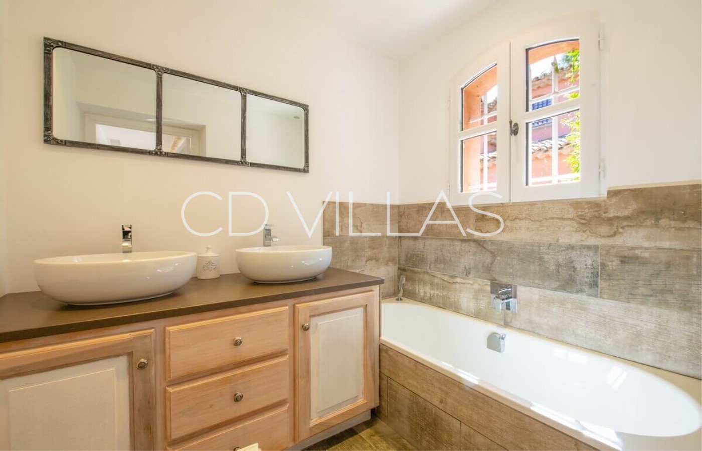 La villa se trouve dans un jardin fabuleux de 6000 m² de pelouses avec un terrain de pétanque, une cuisine d'été couverte avec table et canapés. Il y a une piscine de 11 mètres qui peut être chauffée, entourée d'une grande terrasse ensoleillée avec parasols, transats et tables ainsi qu'un barbecue familial. C'est un paradis pour les enfants car dans le jardin se trouvent une cabane en bois et des balançoires. Pendant ce temps, les parents peuvent trouver un refuge paisible dans le salon balinais en teck d'où vous pourrez admirer le coucher de soleil sur le pittoresque village perché de Ramatuelle.