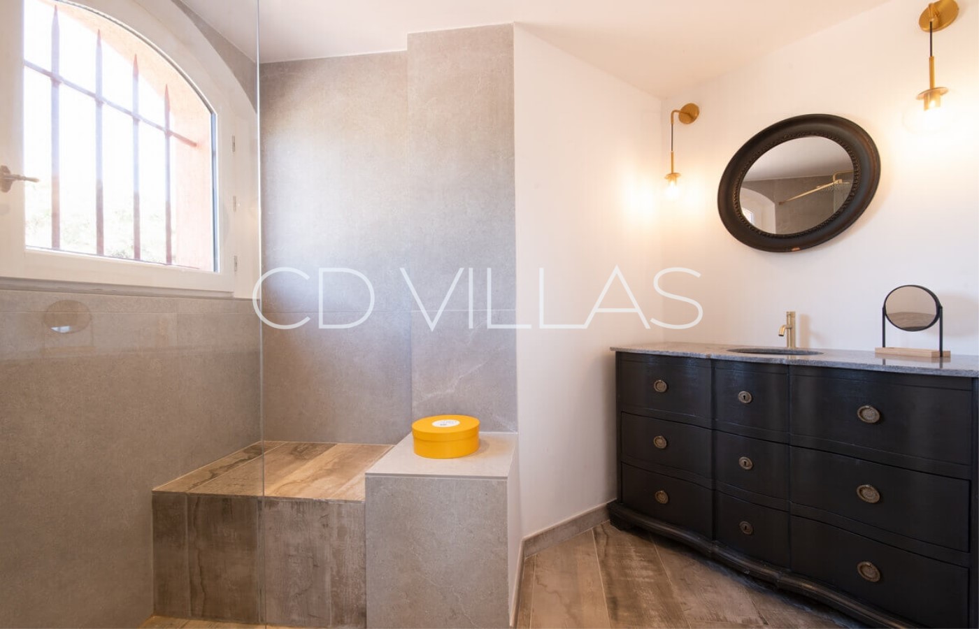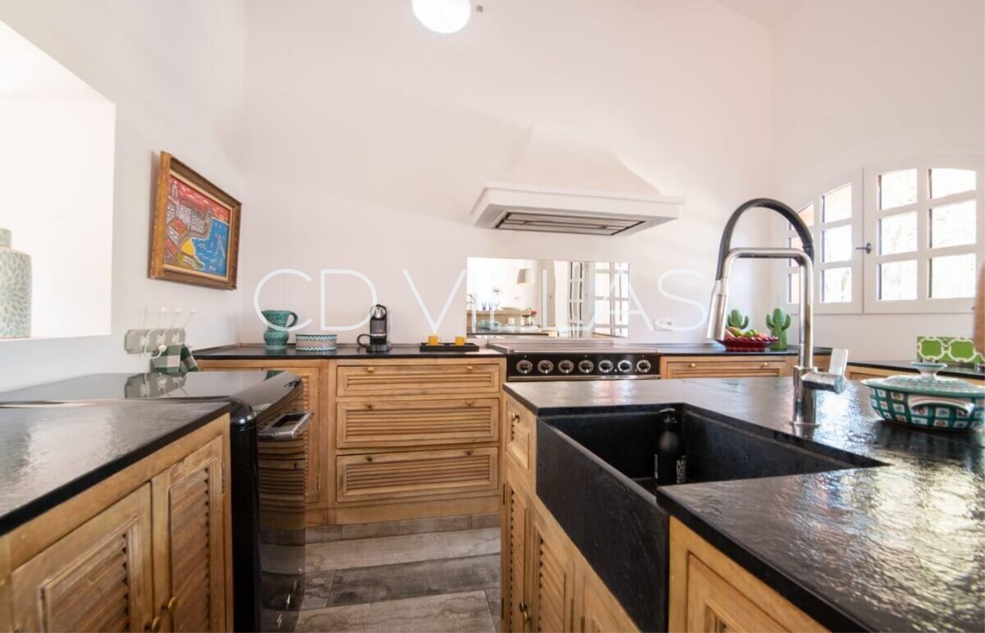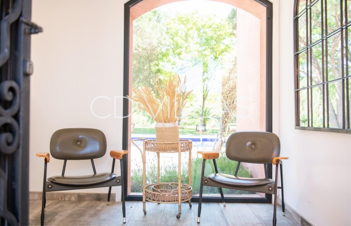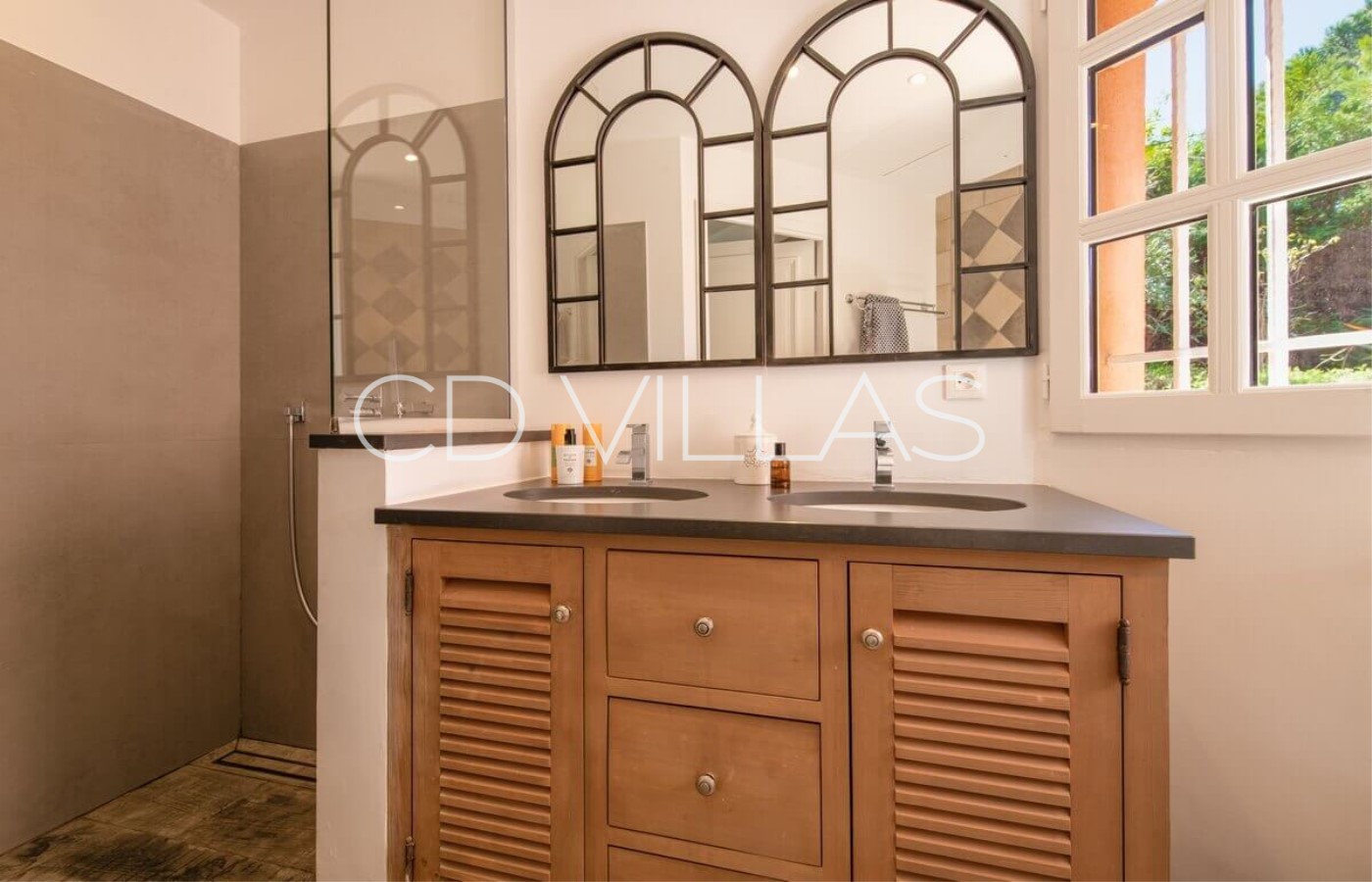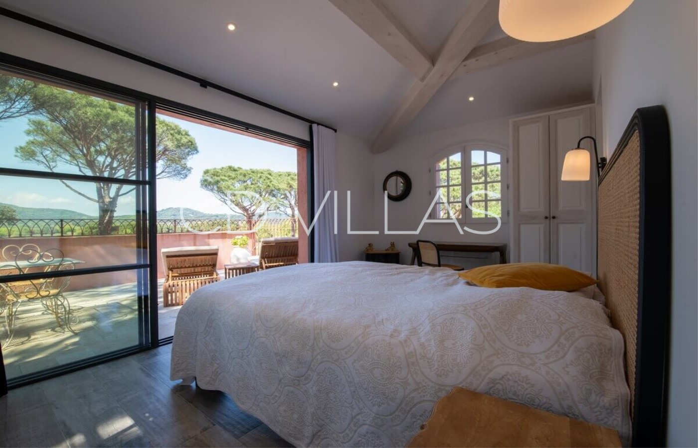 Relaxez-vous dans cette belle maison familiale nichée au milieu des vignes à proximité du village de Ramatuelle, à seulement 2 km de la plage de Pampelonne. La propriété dispose de 6 chambres récemment rénovées, toutes climatisées et chacune avec sa nouvelle salle de bains ou salle de douche privative. Cinq des chambres sont situées au rez-de-chaussée et une est située dans la tour à l'étage. Il y a quatre chambres avec un lit double pouvant être aménagé en lits jumeaux, une chambre simple et une chambre avec lits superposés pouvant accueillir 2 enfants. La propriété a été entièrement rénovée en 2015 et décorée dans un style charmant en teck et en bois brossé blanc.