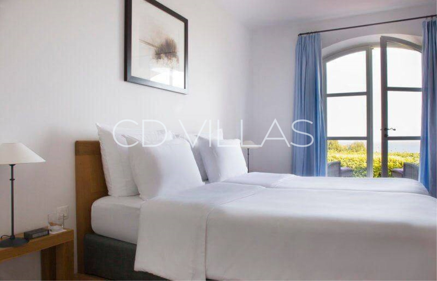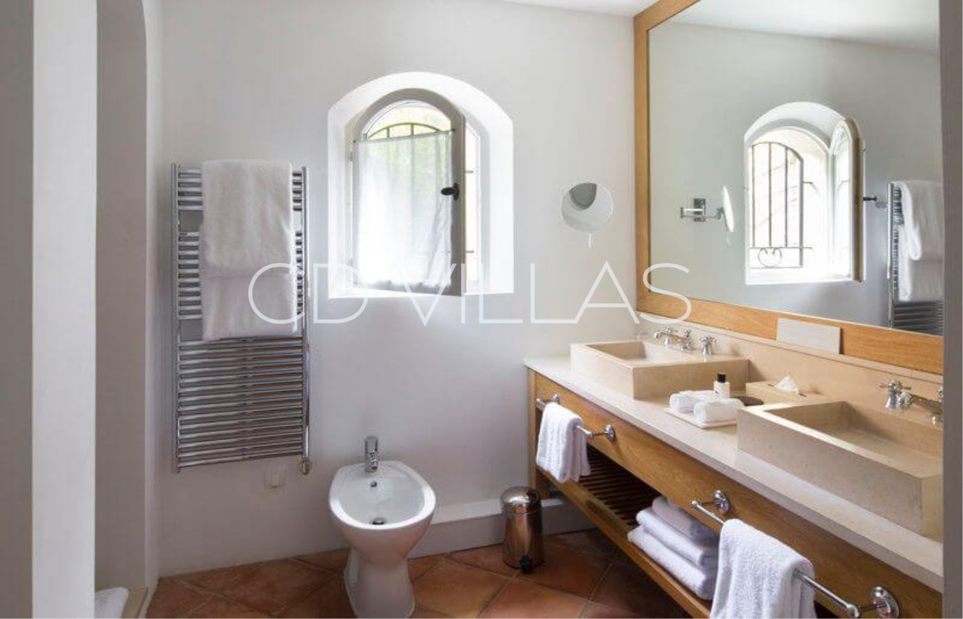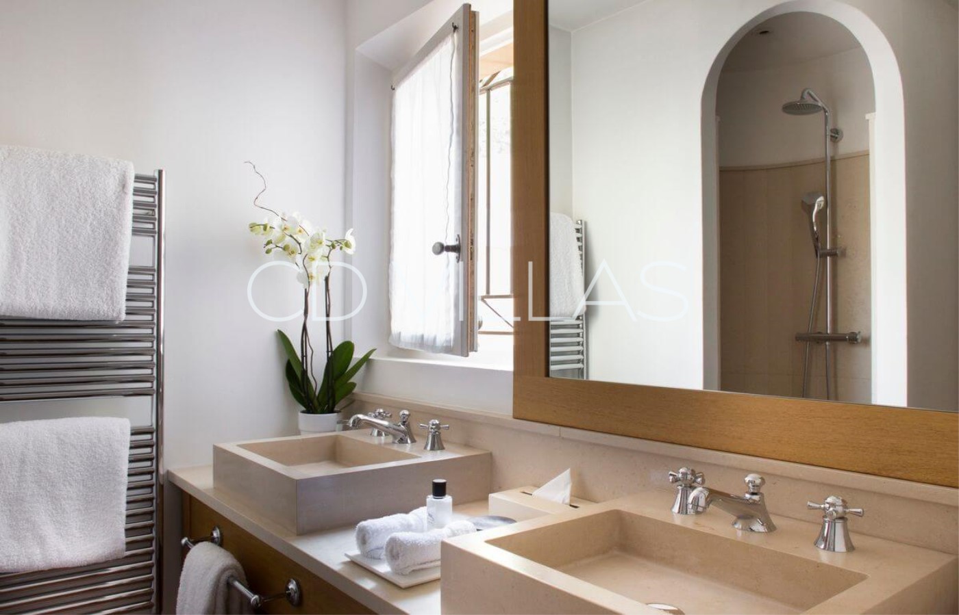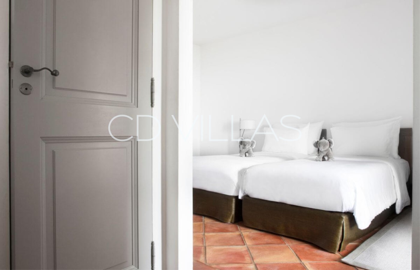D'un côté, vous avez la cuisine qui est régulièrement approvisionnée tout au long de votre séjour avec des boissons chaudes et non alcoolisées et une sélection de bouteille de vins est fournie à l'arrivée; ainsi que la salle à manger qui donne sur une terrasse ombragée, et deux chambres doubles avec salle de bain privée. De l'autre côté, il y a trois autres chambres doubles avec salle de bains privée, ainsi que la chambre principale avec grande salle de bain, dressing et terrasse privée avec chaises longues et vue mer.