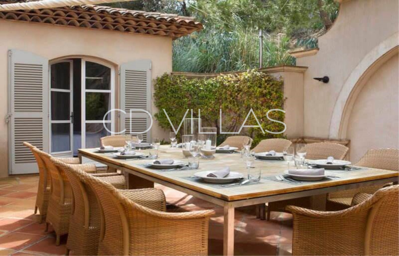 La villa les Fresias est située dans un domaine isolé à Ramatuelle, près de la plage de l'Escalet et dispose d'un grand jardin de 4800m² avec des plantes méditerranéennes parfumées, et de nombreux arbres et arbustes créant ainsi un havre de paix avec une vue panoramique sur la mer.