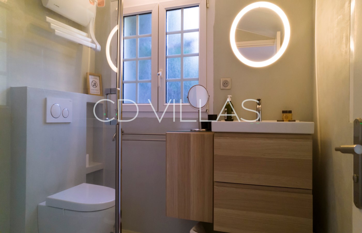 Il y a aussi une salle de bain extérieure balinaise avec douche, coiffeuse et WC pour ceux qui veulent profiter au maximum de la vie en extérieur. La maison dispose de la climatisation dans les chambres, d'un système d'alarme et du WIFI.