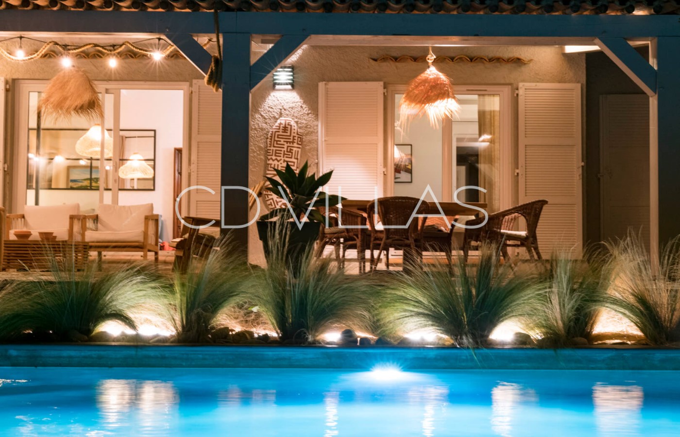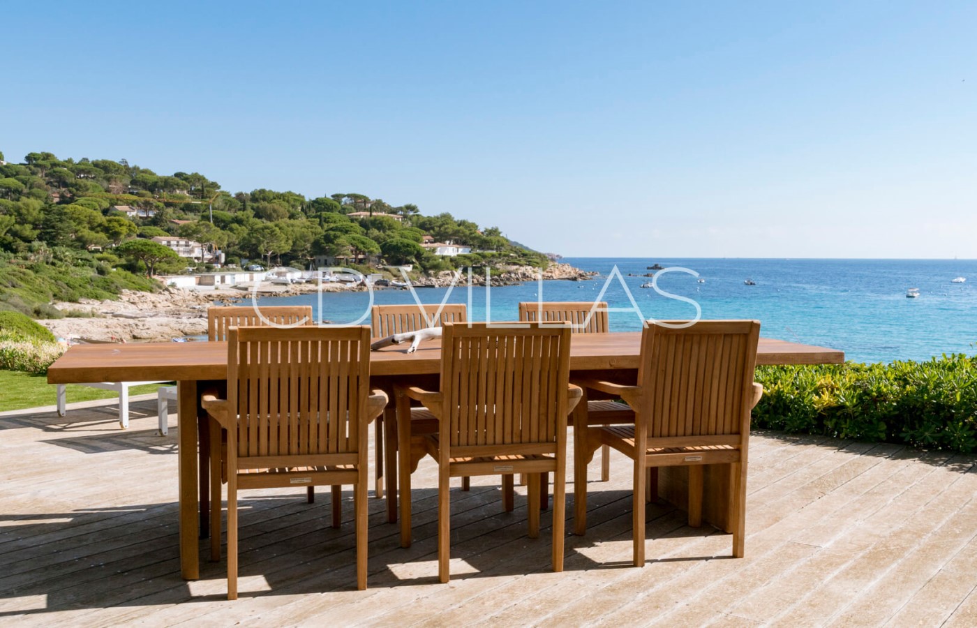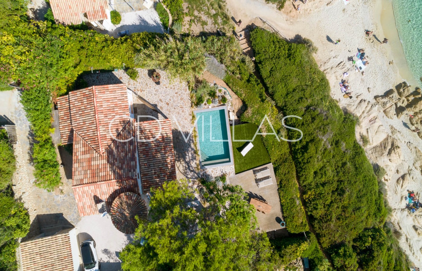 La villa est située dans un quartier privilégié de Ramatuelle, en front de mer de la plage de l'Escalet.