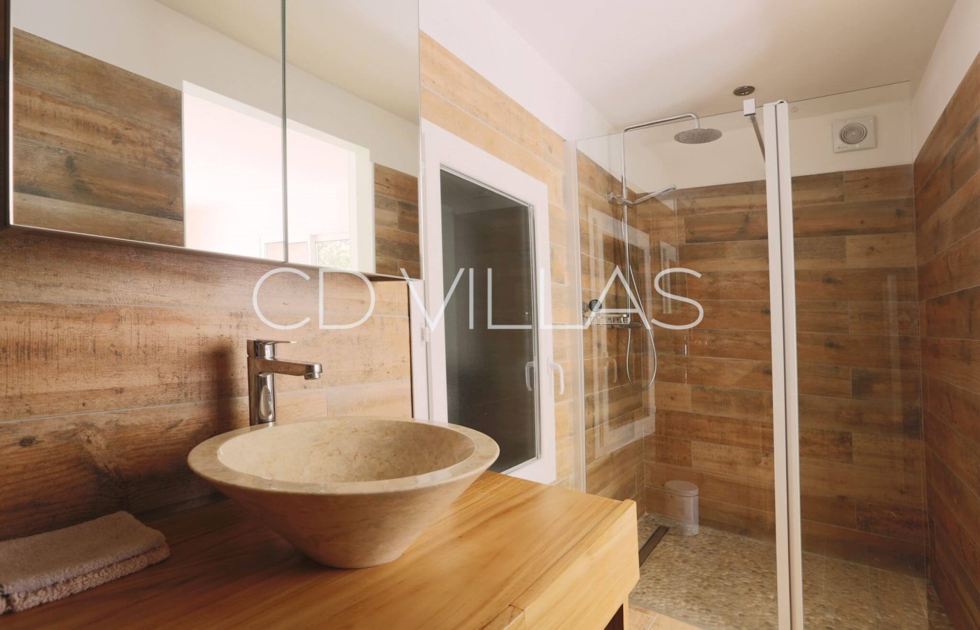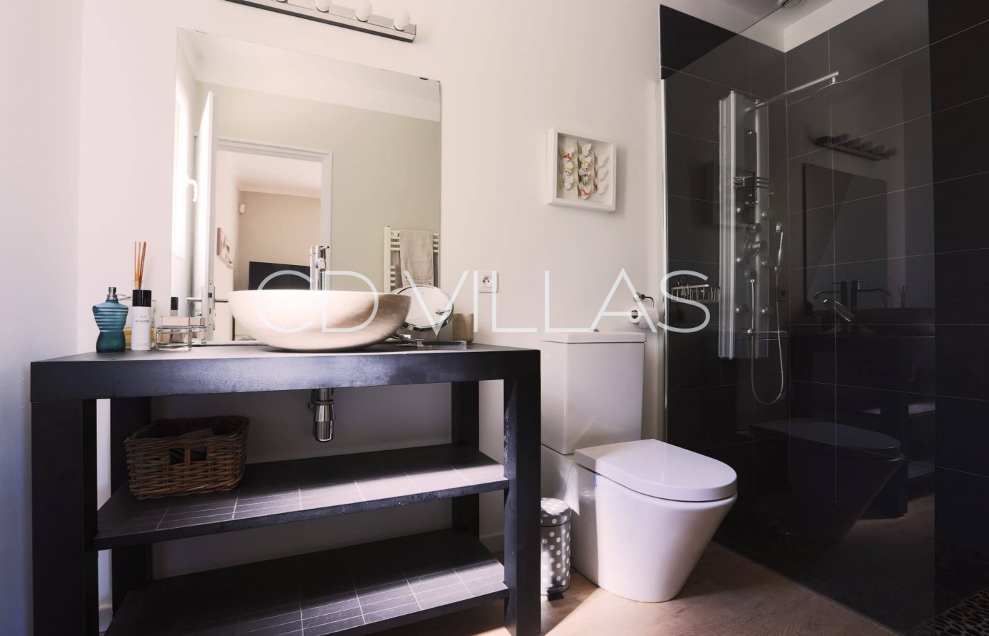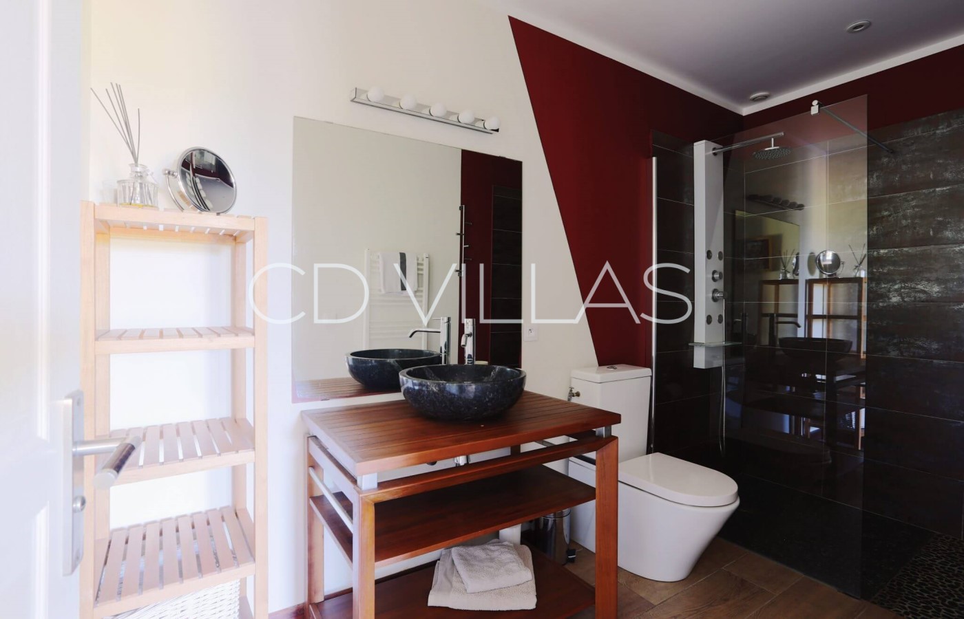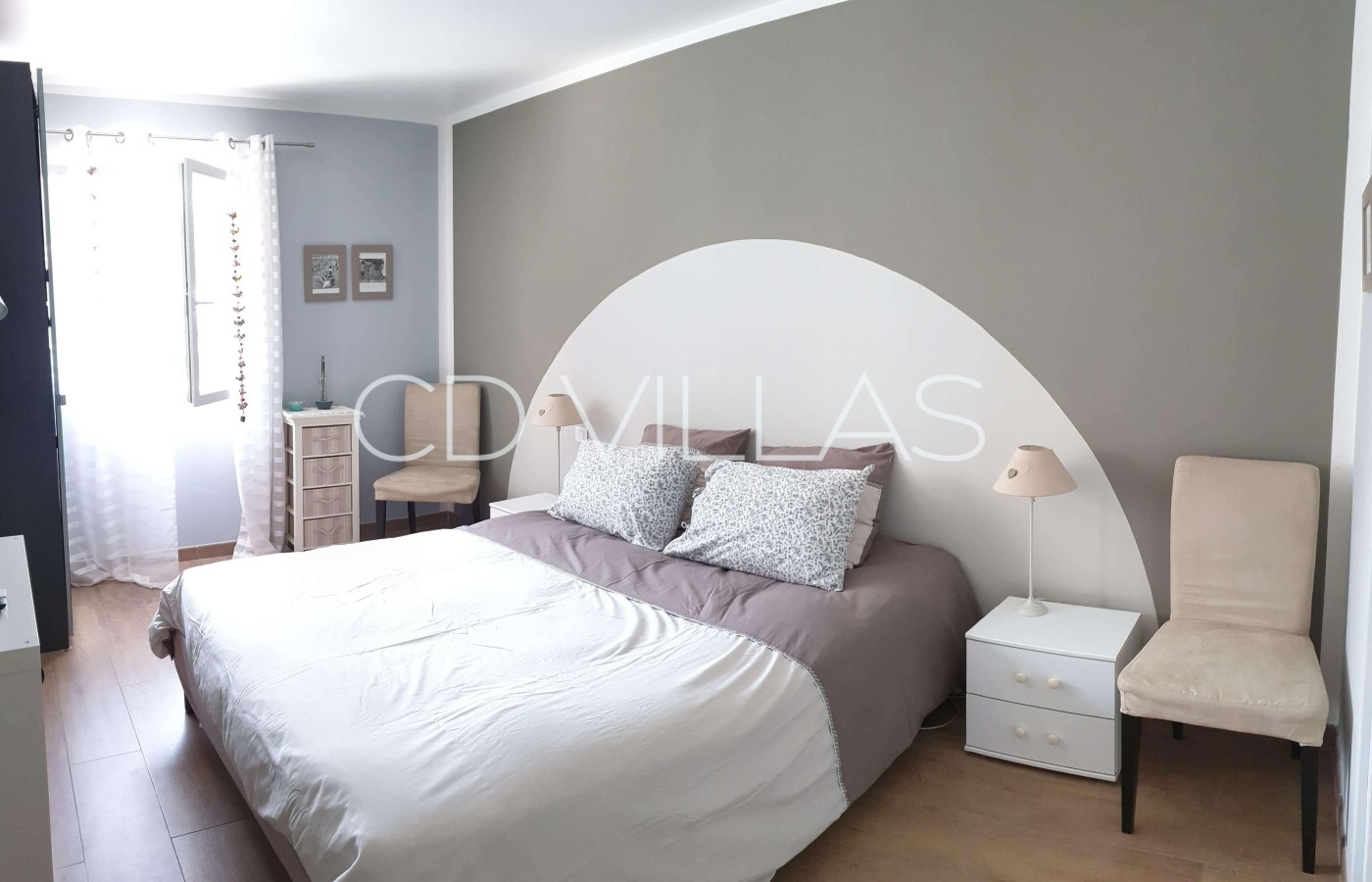 La maison a un grand séjour ouvert avec salon, salle à manger et cuisine moderne entièrement équipée. Trois chambres sont situées au rez-de-chaussée, chacune avec une salle de douche et WC; la dernière chambre est au rez-de-jardin avec une salle de douche attenante et un accès direct à la piscine. Il y a la climatisation dans toutes les chambres et un système d'alarme.