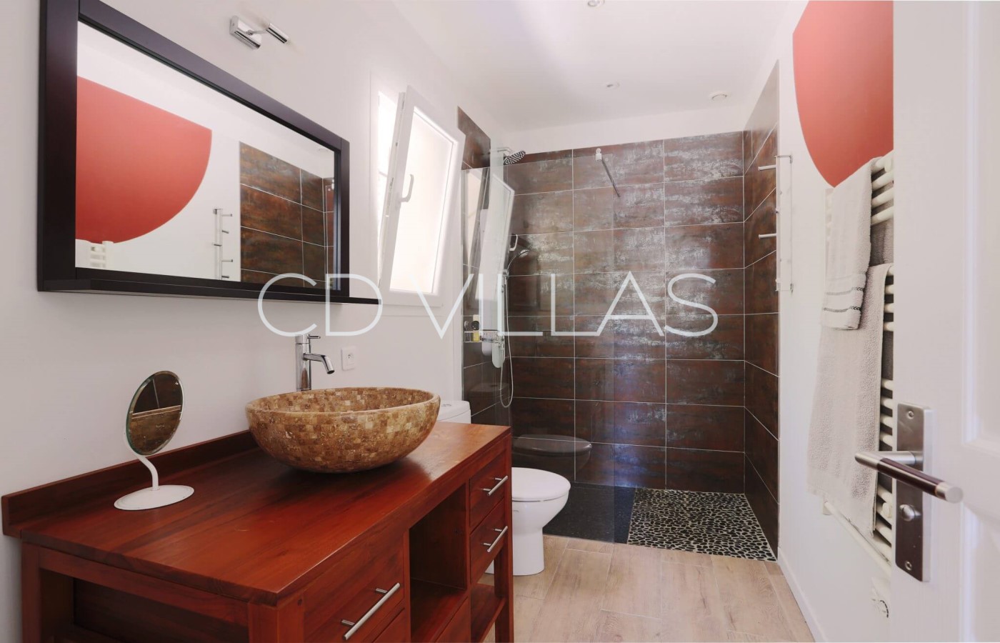 Bedroom 4 - Chambre avec un lit double (160cm), salle de bain attenante (douche). Entrée séparée et accès direct à la piscine.