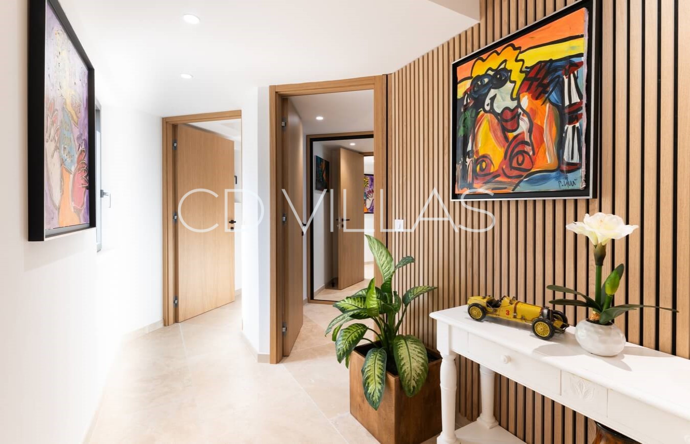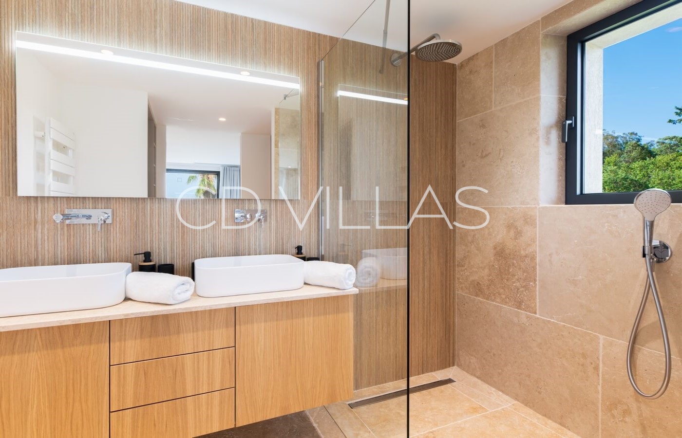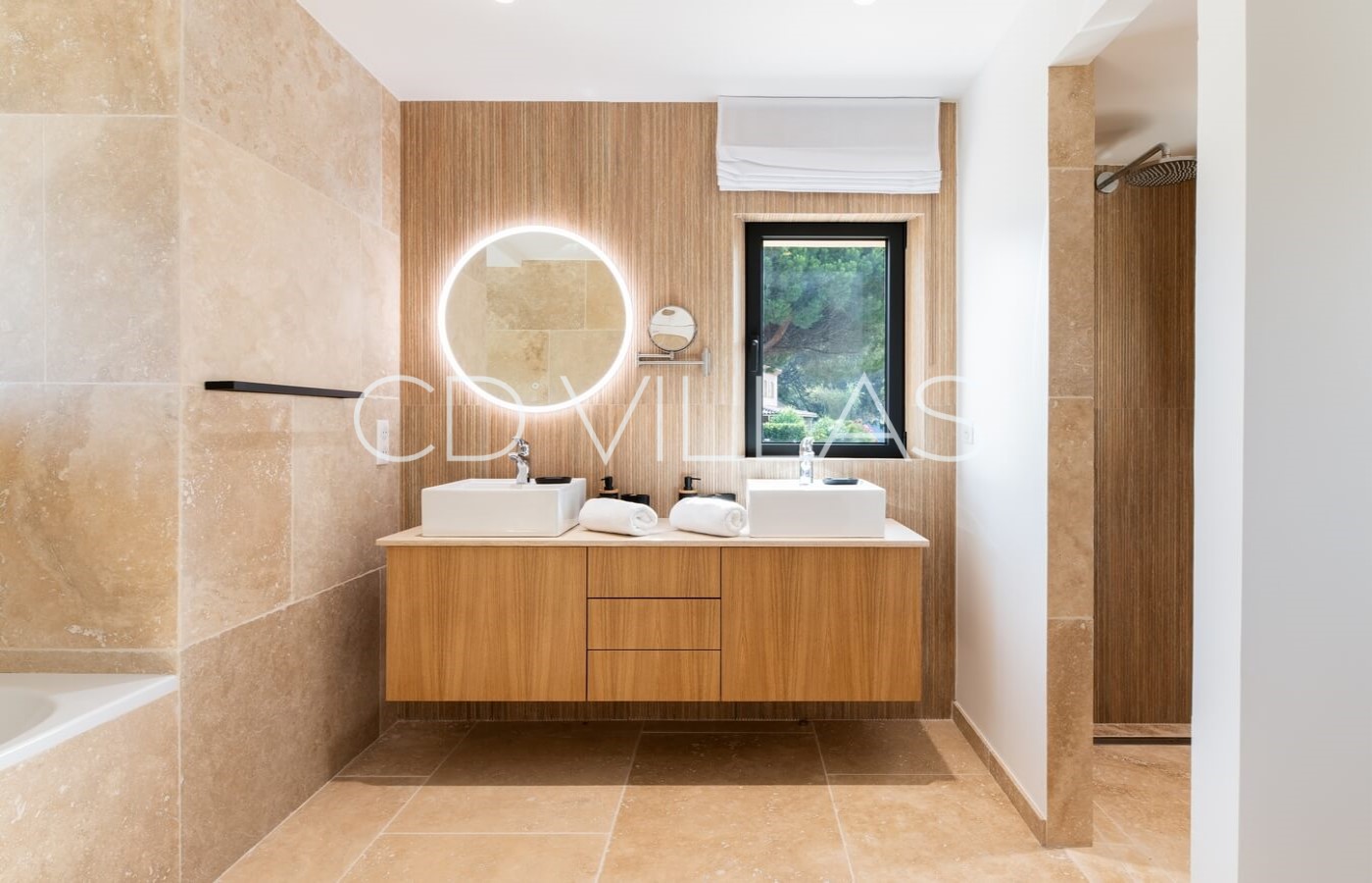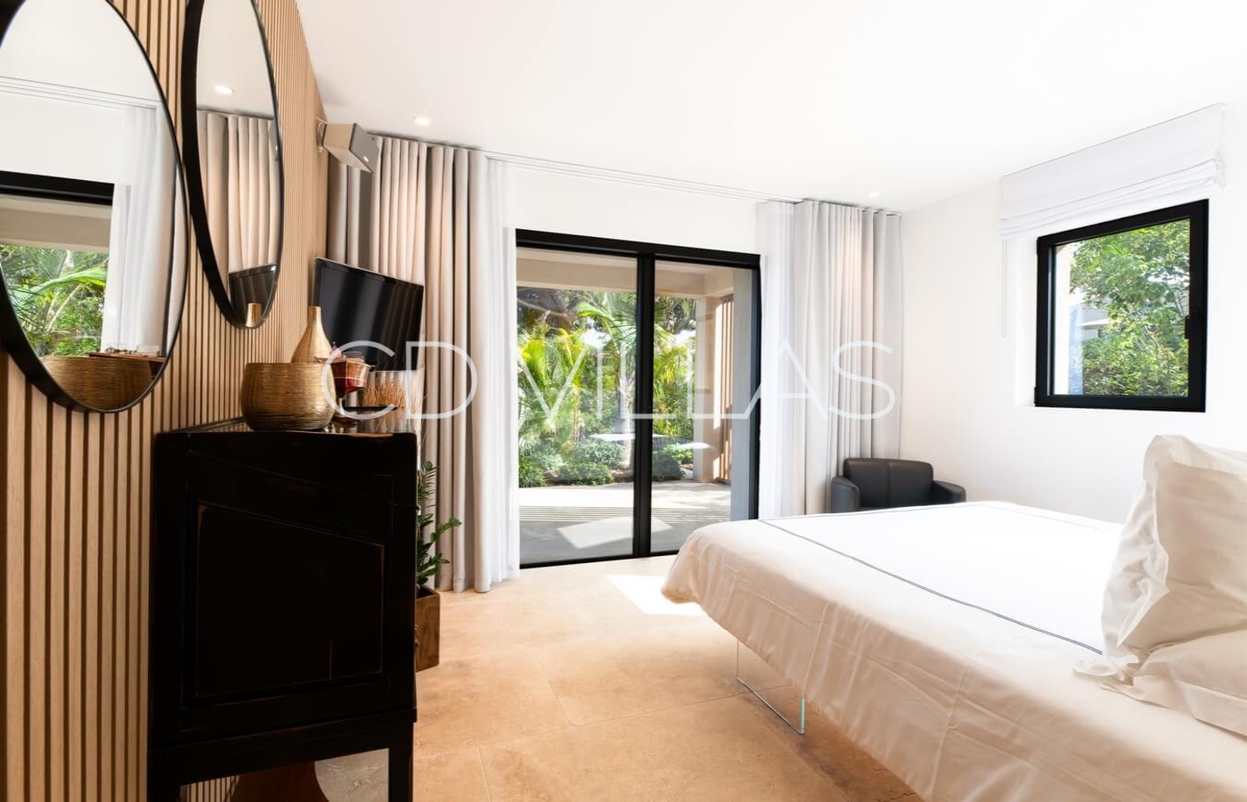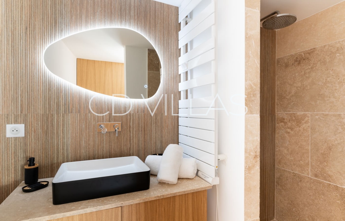 La villa propose 5 chambres luxueuses, chacune dotée de son propre dressing et sa salle de bain. La chambre principale dispose d'une terrasse privée offrant un espace de détente exclusif.