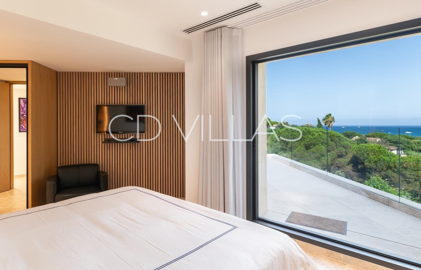 Nichée dans un écrin de verdure dans un quartier exclusif, ce joyau rénové offre une vue magnifique sur la mer et tout le confort que l'on peut souhaiter.