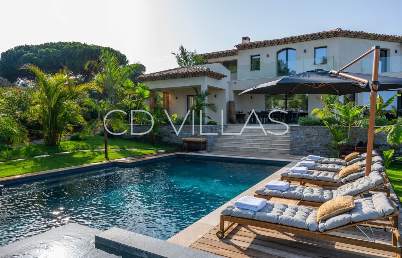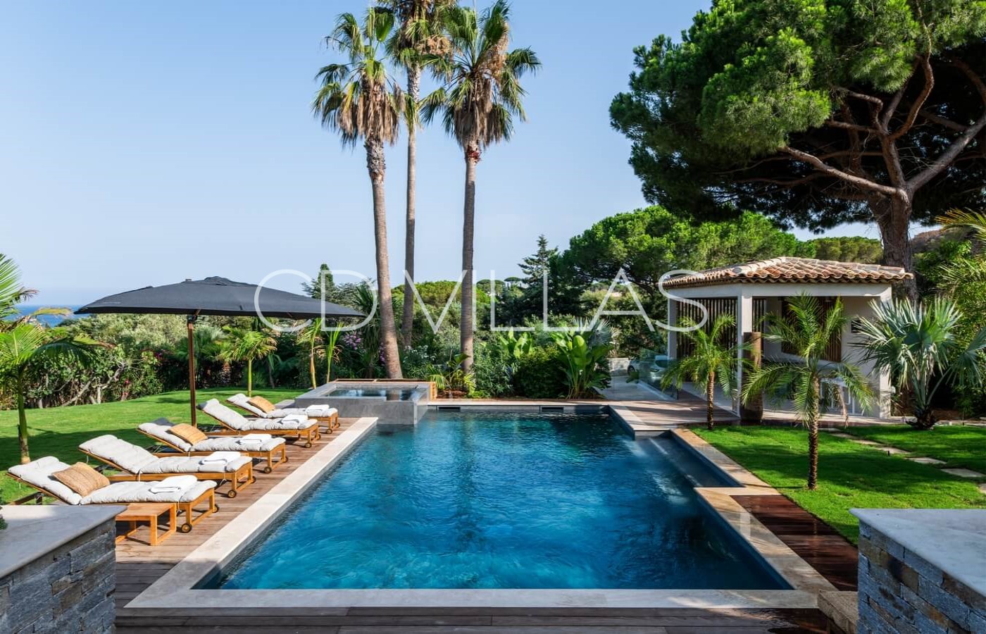 Cette villa de 5 chambres récemment rénovée est idéalement située à seulement 5 minutes à pied de la célèbre plage de Pampelonne et du légendaire Club 55 et à 3 km de Saint-Tropez.
