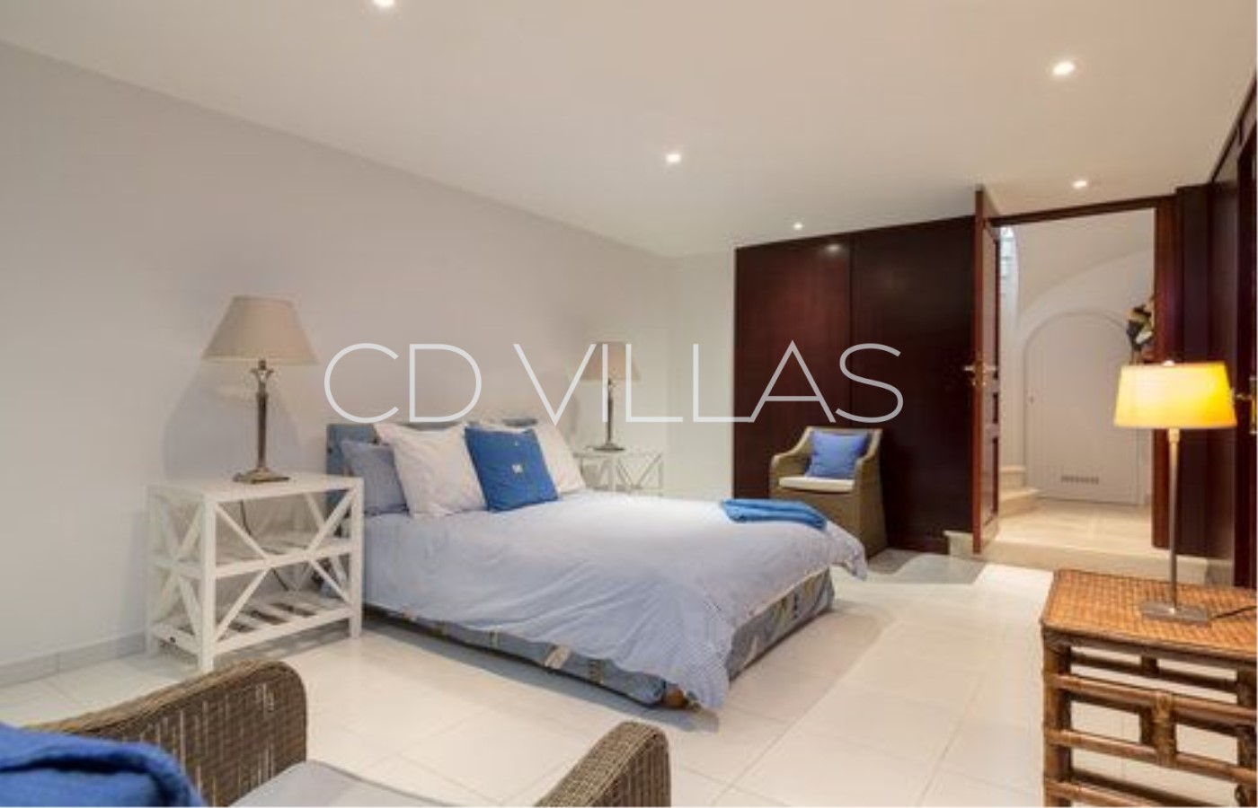 La propriété propose un hébergement pour 8 adultes dans quatre chambres doubles, plus une chambre pour 4 enfants avec des lits superposés confortables et une salle d'eau. Toutes les chambres disposent d'une salle de bains privative et sont toutes climatisées. La suite principale occupe tout le dernier étage de la villa et dispose d'une grande salle de bains, d'un dressing et de sa propre terrasse privée. Le salon est spacieux et contemporain et dispose d'un équipement haut-de-gamme tel que le contrôle de la température, télévision Sky, Internet et un système multimédia. La cuisine est entièrement équipée et dessert trois espaces-repas.