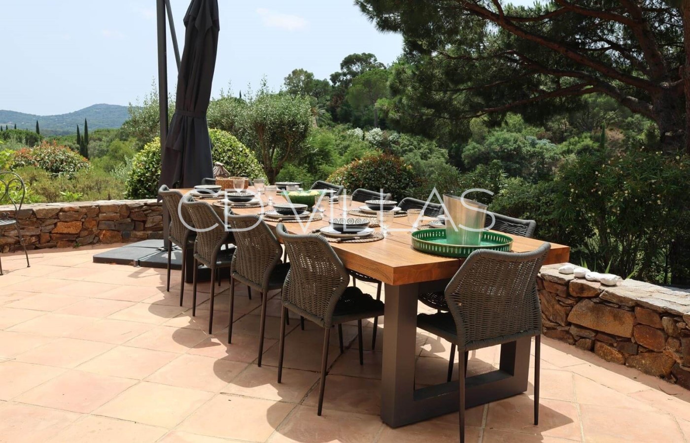 Entièrement équipée, cette villa offre quatre chambres, chacune avec sa propre salle de bain privative, garantissant confort et intimité. De plus, une cinquième chambre a été aménagée en loft indépendant, comprenant une cuisine, un espace de vie, une salle de bain et un coin nuit, avec une entrée séparée pour plus de commodité.