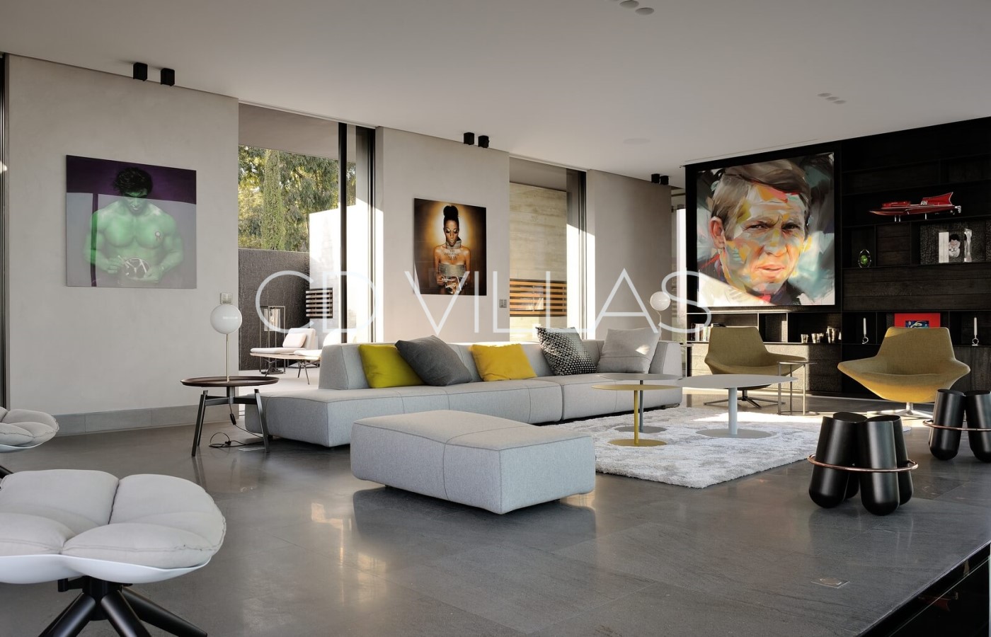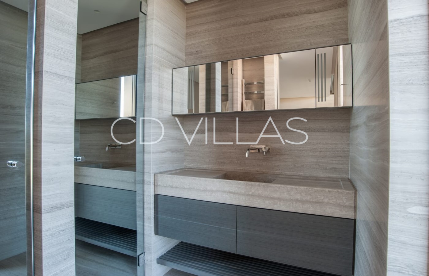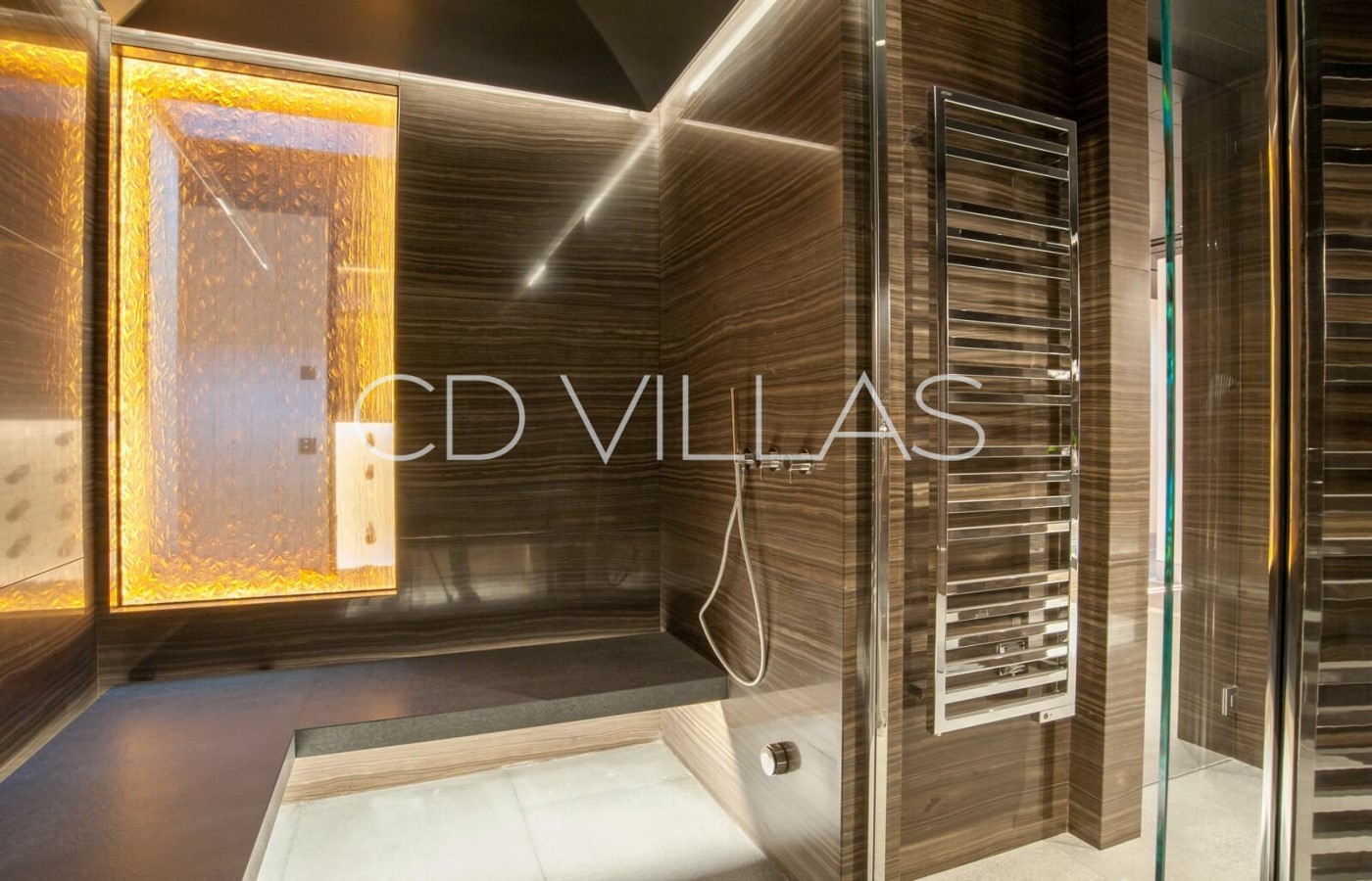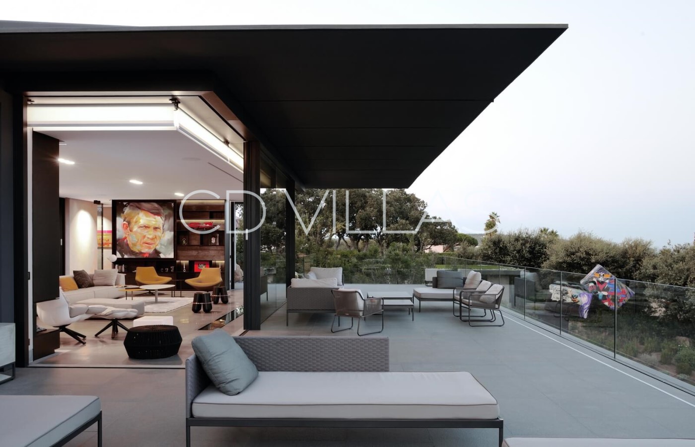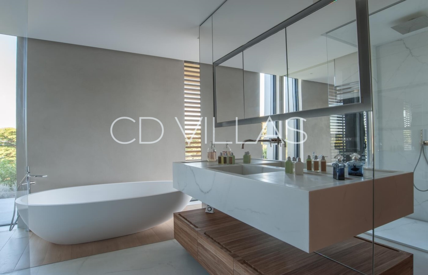 Le niveau jardin abrite 5 chambres d'invités avec salles de bains attenantes, un coin bureau, des armoires intégrées, une télévision et la climatisation, un grand hammam avec douche et vestiaire, une salle de jeux avec grand écran TV et deux chambres pour le personnel partageant une salle de bains. Il y a plusieurs éléments d'eau dans le patio, le jardin et la piscine, et les invités peuvent profiter de moments à l'ombre, prendre un verre tout en admirant la vue, sur une grande terrasse avec un brasero.