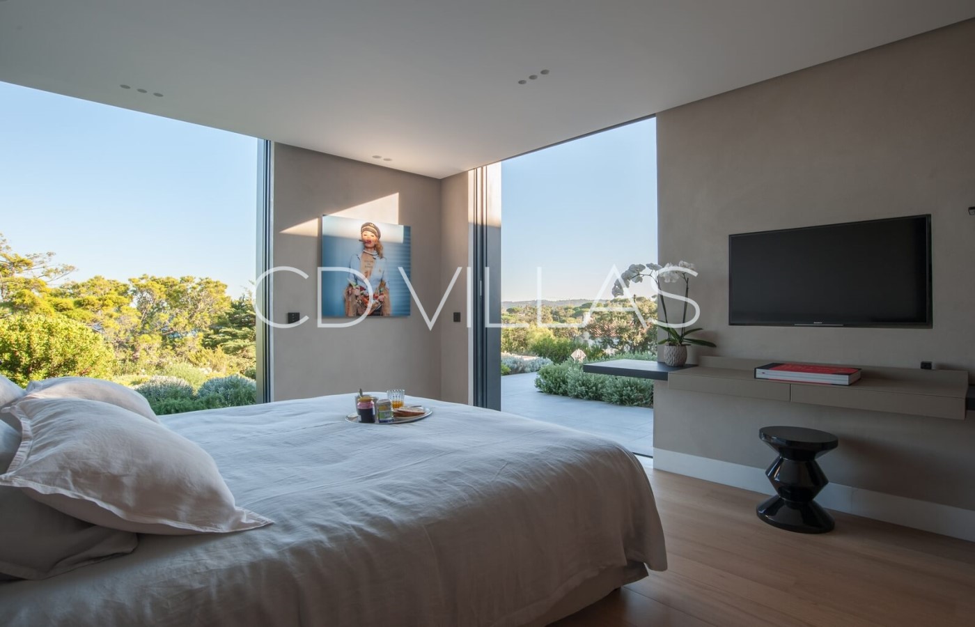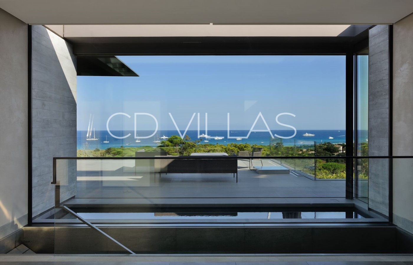 Villa Wilhema est une résidence contemporaine de haute couture, ouverte sur la magnifique baie de Pampelonne. Cette perle architecturale, définie par le béton, le verre, l'eau et la pierre, est aussi remarquable par sa brillance technique que par l'harmonie de ses intérieurs et de ses jardins. Elle offre une vue imprenable sur la mer depuis le grand salon, la salle à manger et la chambre principale.