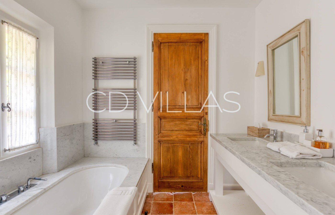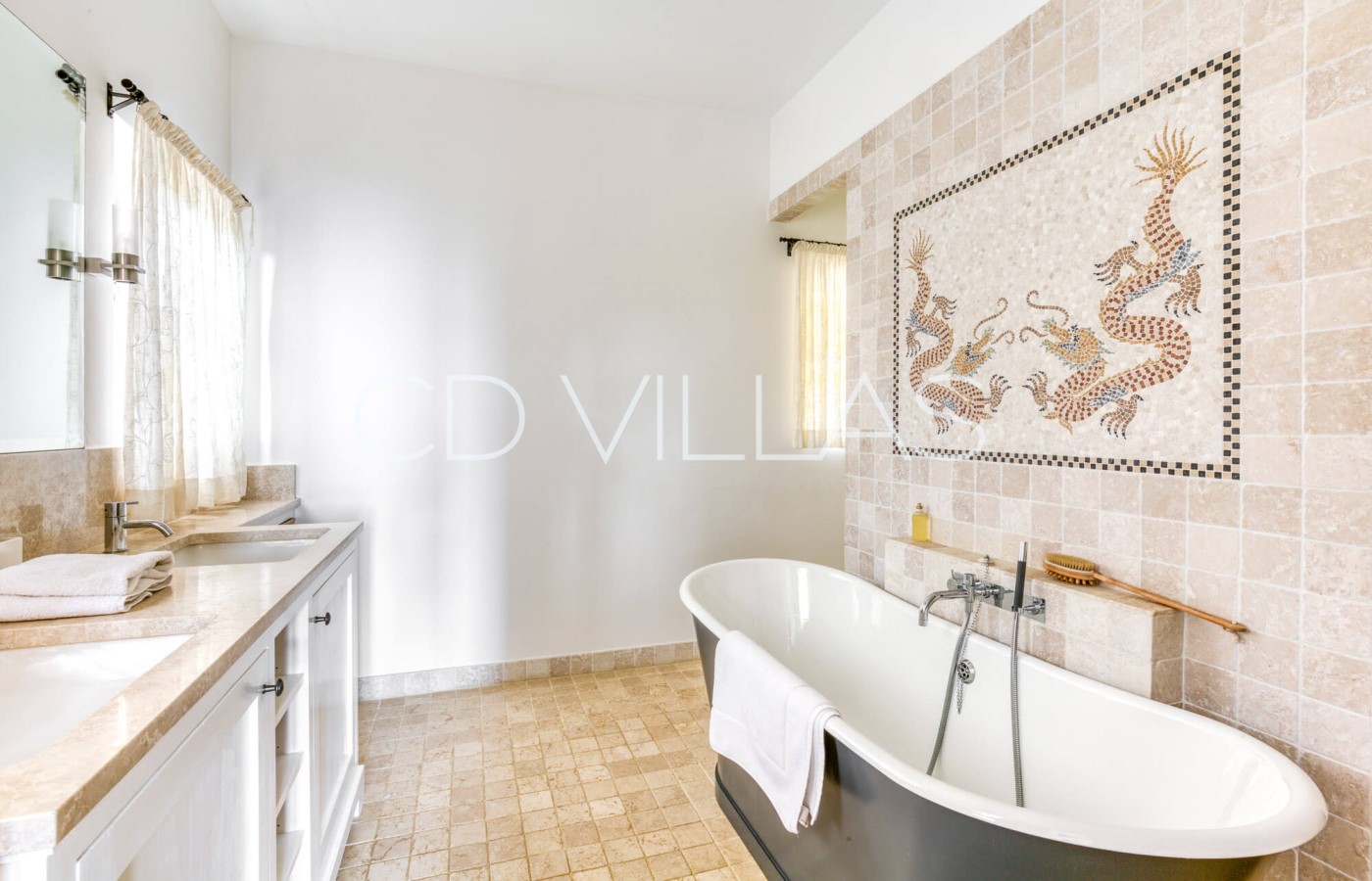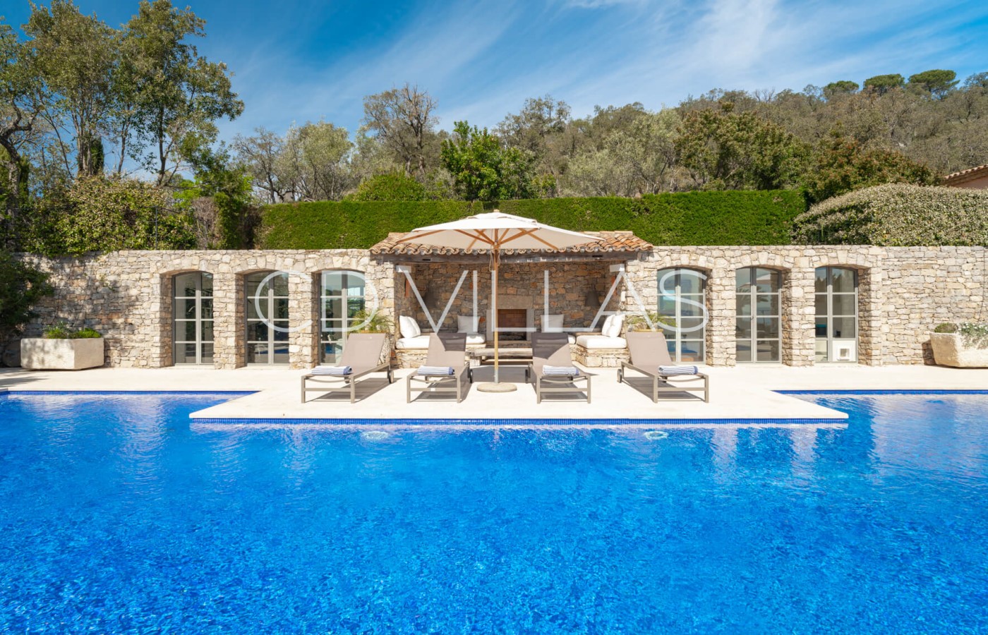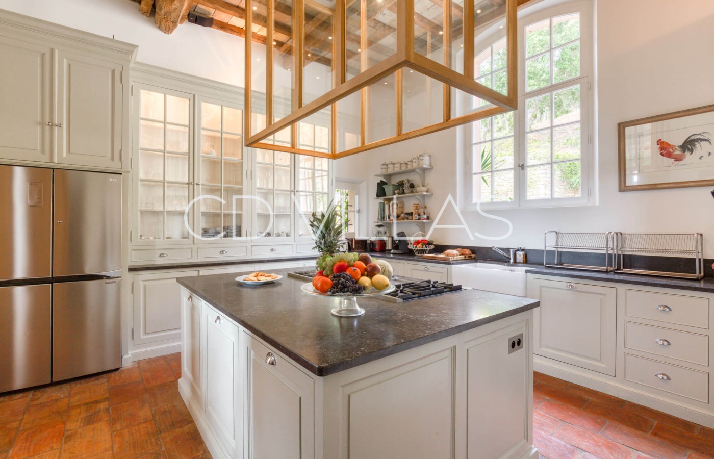 Villa provençale de luxe avec 6 chambres, située dans le Quartier des Marres, à Ramatuelle, avec 3 hectares de terrain, vue mer, une grande piscine et salle de sport. C'est le lieu idéal pour les vacanciers à la recherche d'un endroit reposant et au calme, tout en étant à 5mn en voiture de Saint Tropez et des plages de Pampelonne.