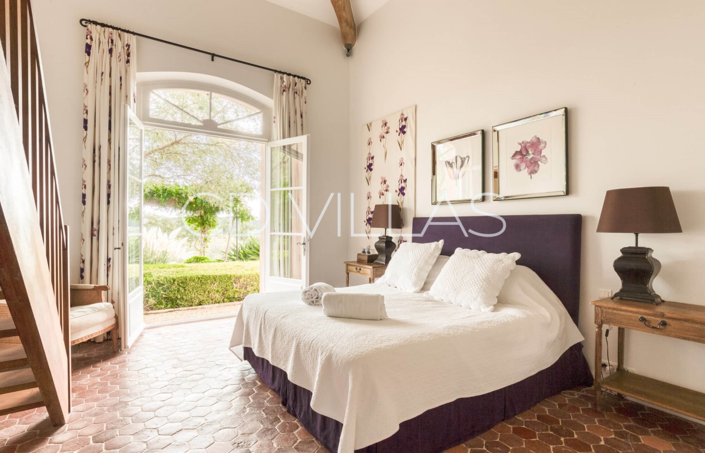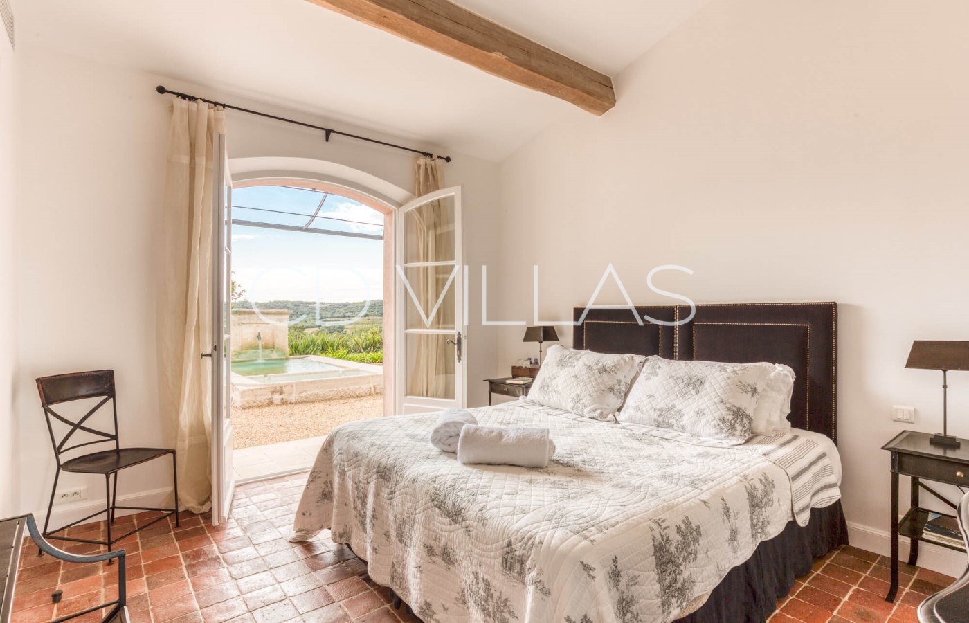 La maison comprend 6 chambres: dans l'aile droite du salon et situées le long d'une verrière devant un bassin d'agrément, il y a 5 chambres, toutes dotées d'une salle de bain privative (avec douche ou baignoire), de grands placards et de climatisation. La chambre de maître est située de l'autre côté de la villa à côté du bureau et offre une chambre de belle dimension, un grand dressing, une salle de bain avec douche et baignoire ainsi qu'une terrasse privée dans une petit jardin d'agrumes où déguster son café matinal au calme.