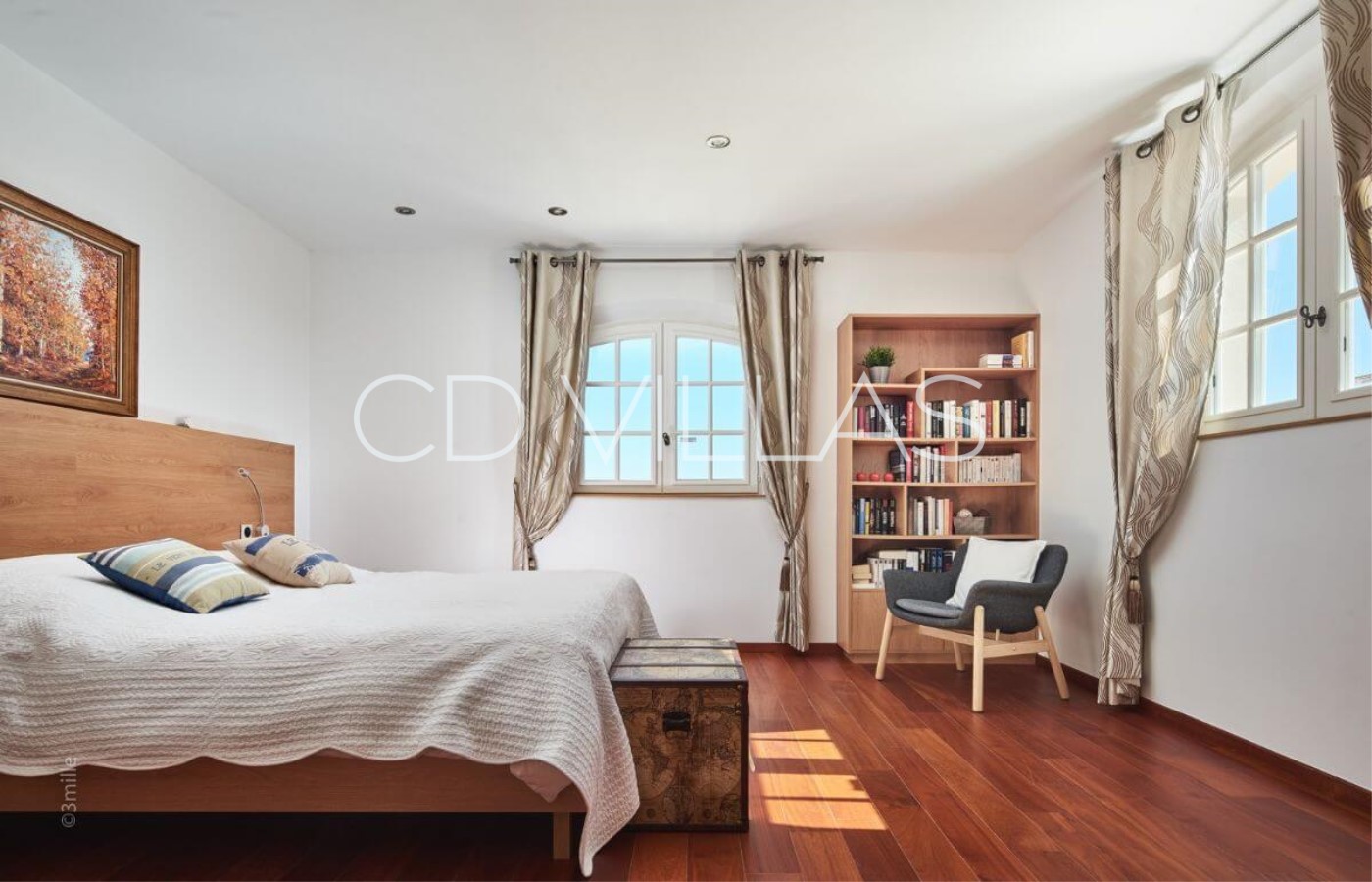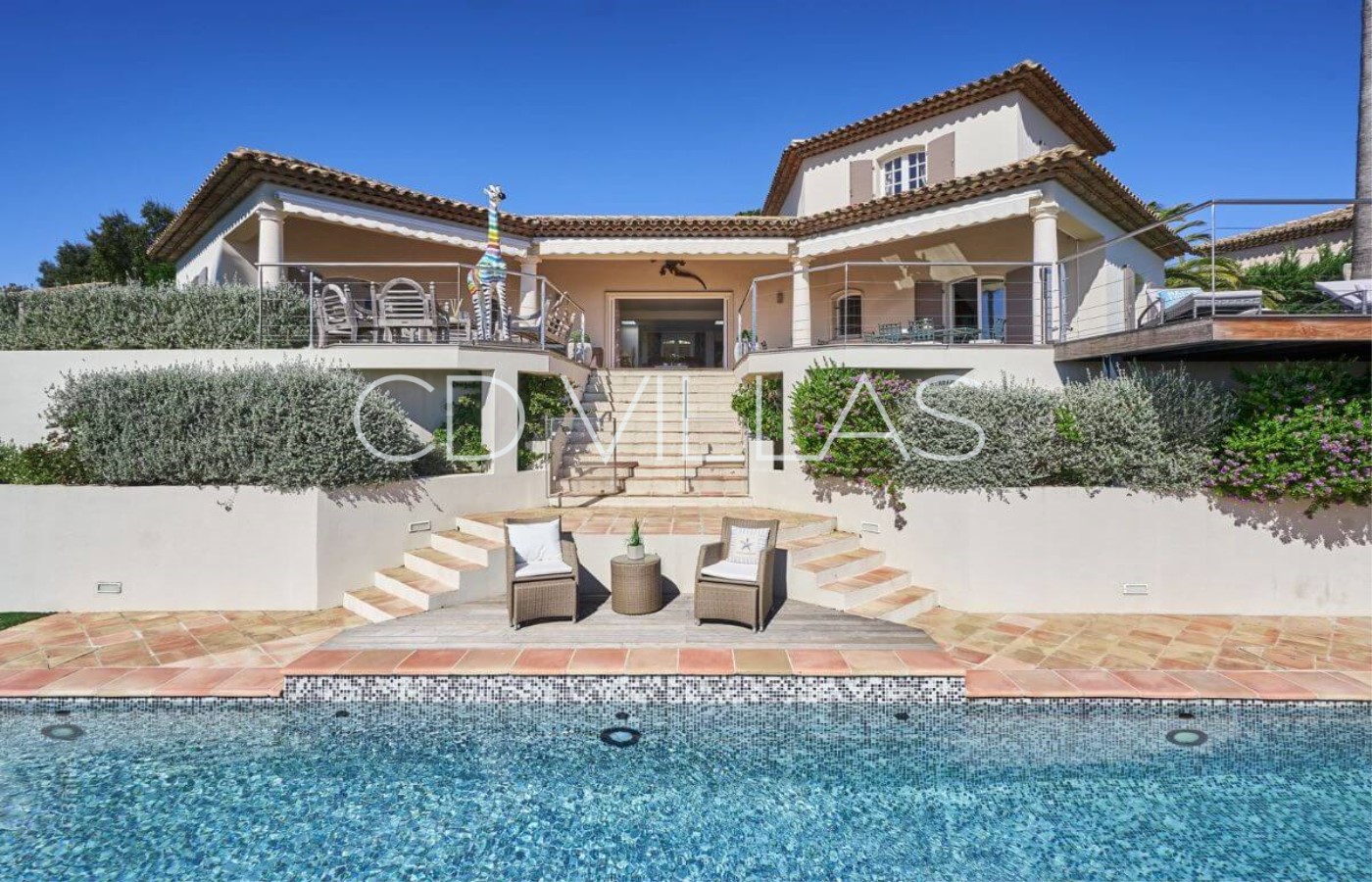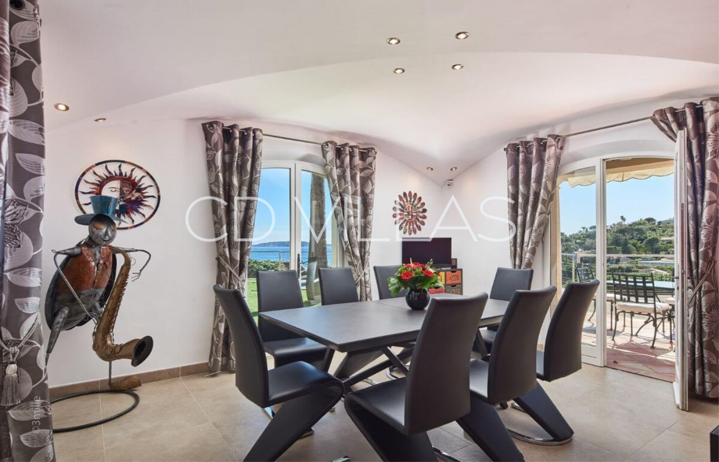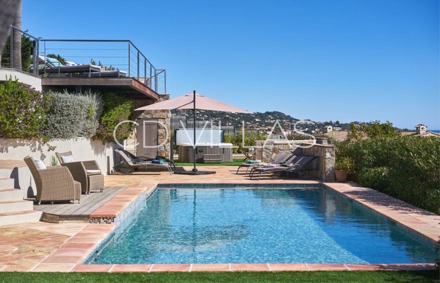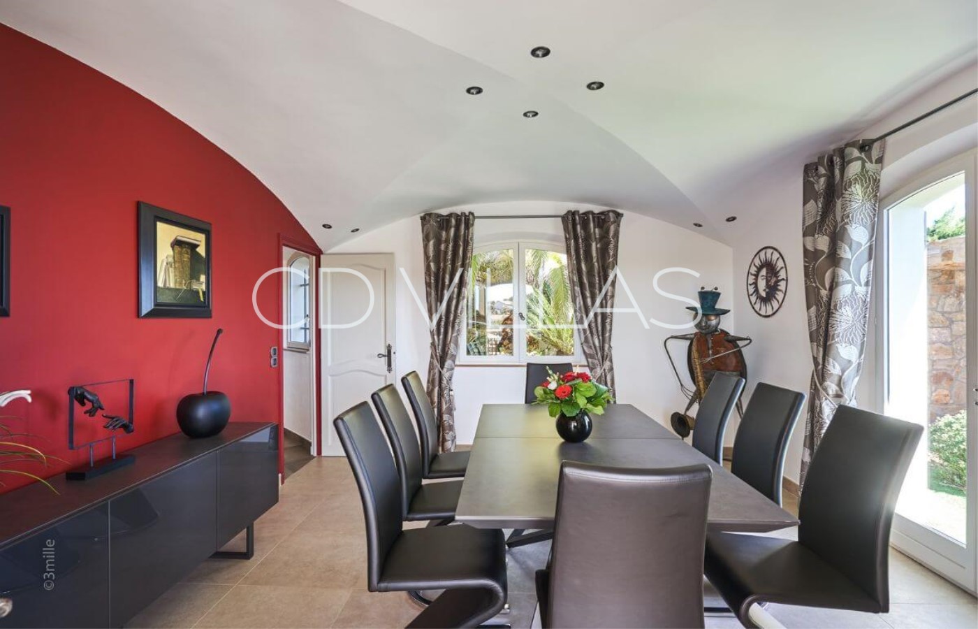 Cette villa familiale est le cadre idéal pour des vacances dans le Sud de la France. Elle possède 4 chambres, chacune avec une salle de bain privative, un salon de 77m2 avec un espace télé, une cuisine très bien équipée et une salle à manger. La maison est baignée de soleil et on ne se lasse pas de la vue sur la Mediterranée !
