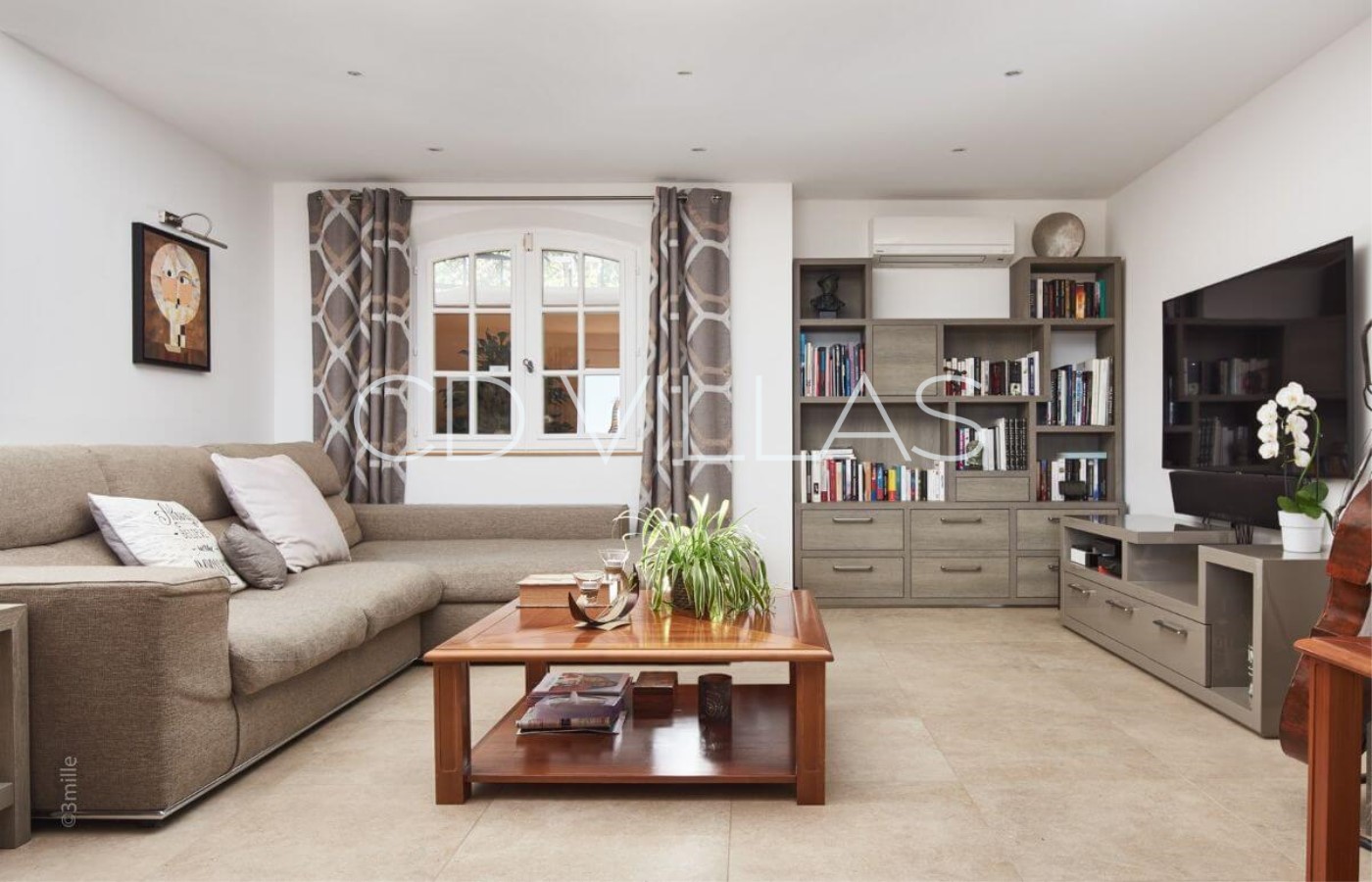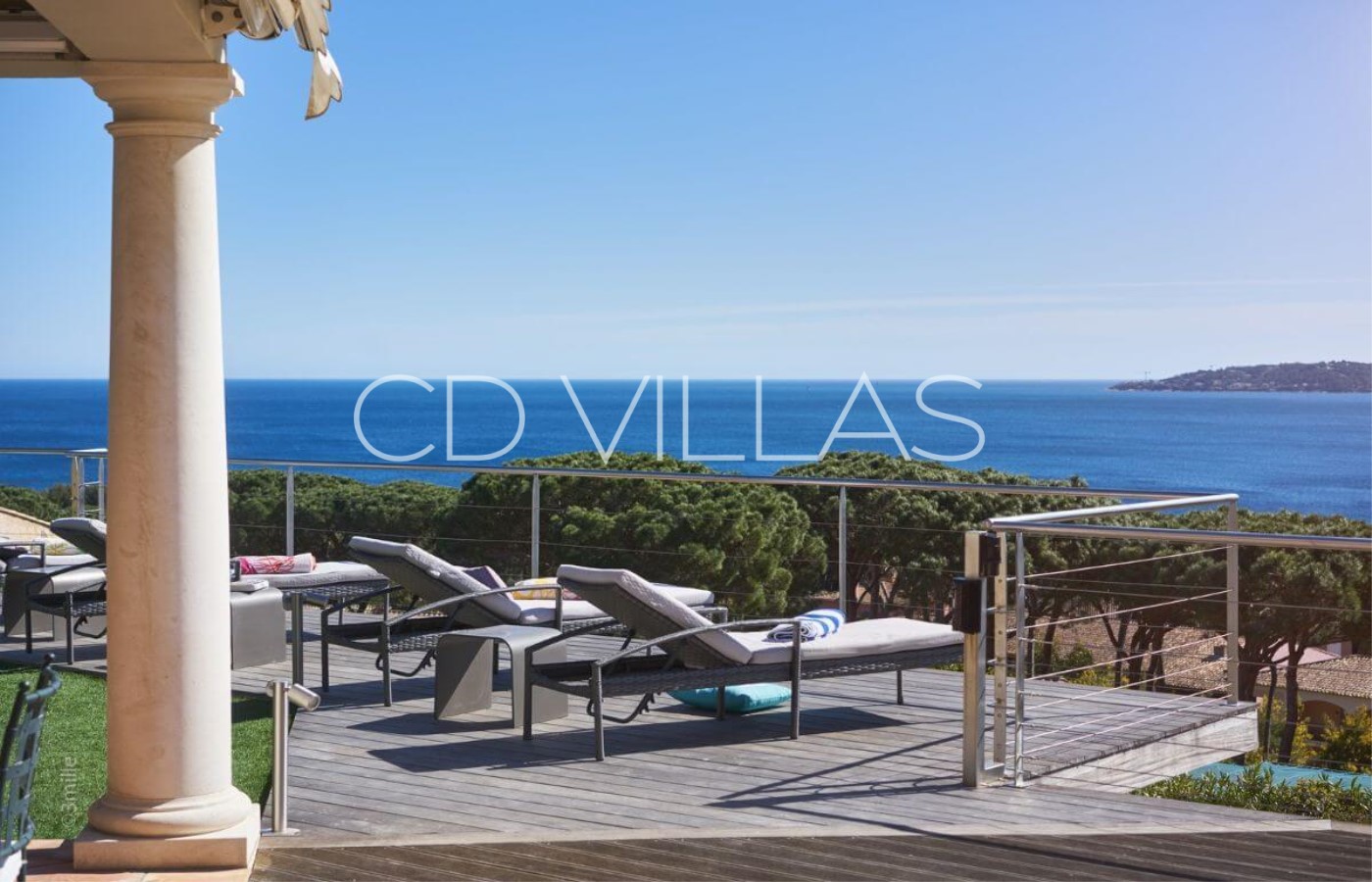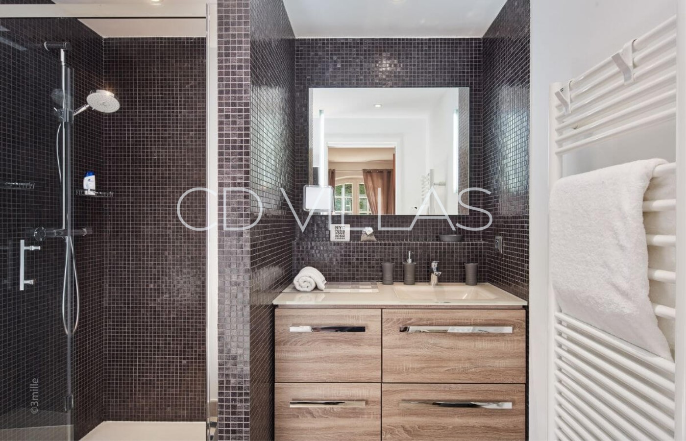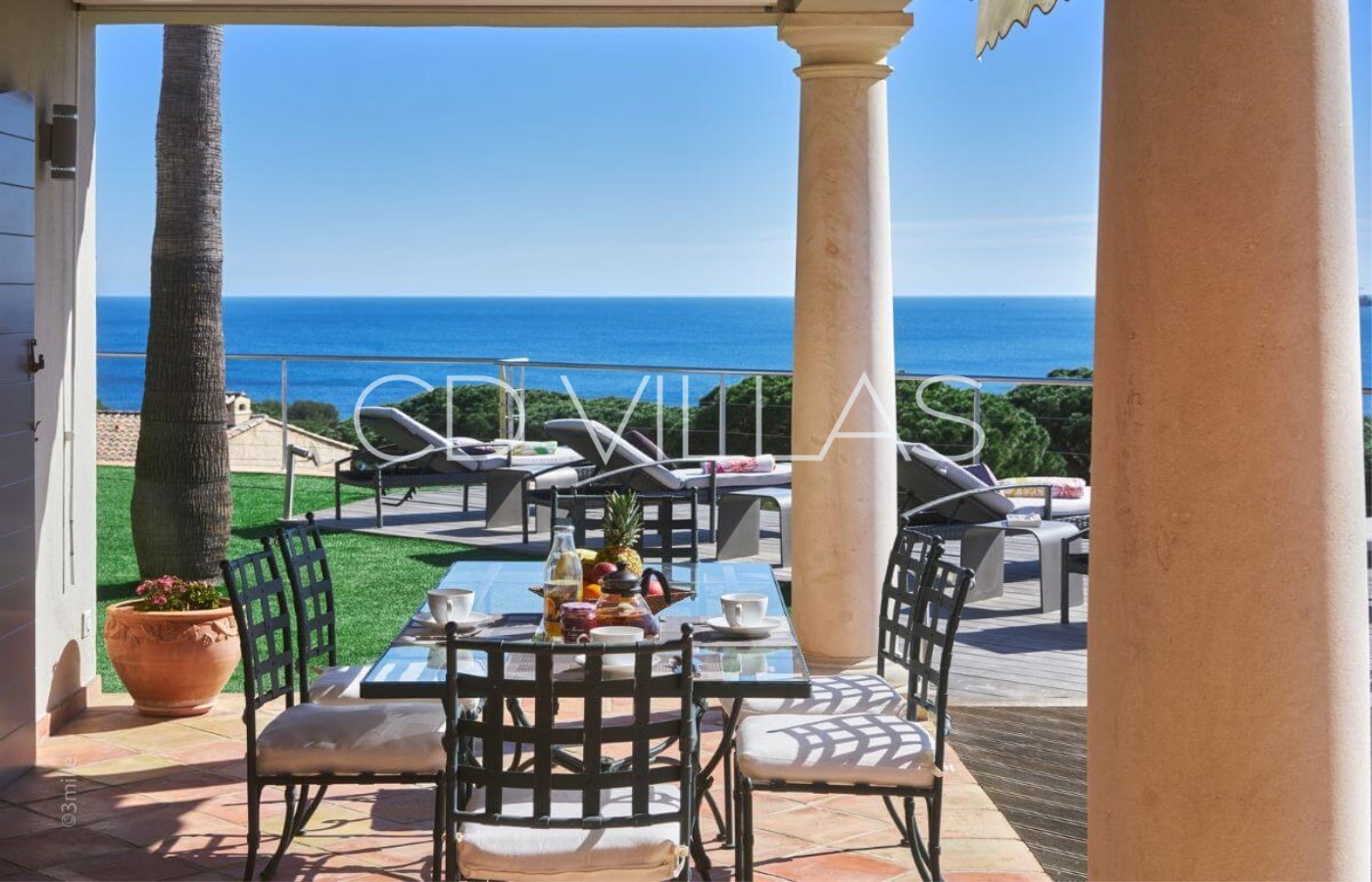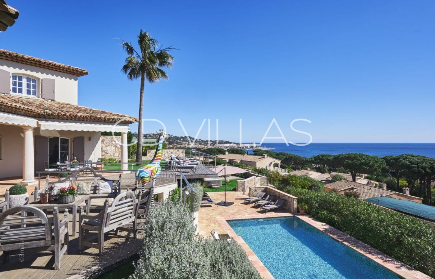 Cette villa familiale est le cadre idéal pour des vacances dans le Sud de la France. Elle possède 4 chambres, chacune avec une salle de bain privative, un salon de 77m2 avec un espace télé, une cuisine très bien équipée et une salle à manger. La maison est baignée de soleil et on ne se lasse pas de la vue sur la Mediterranée !