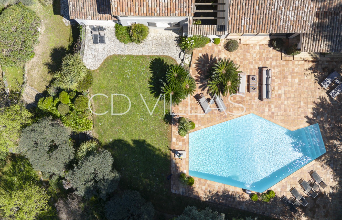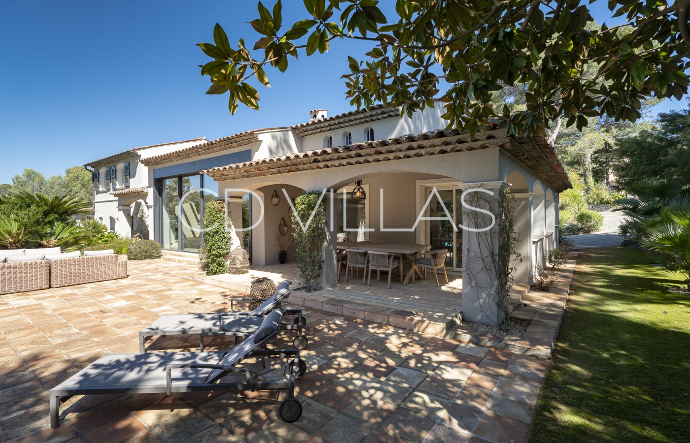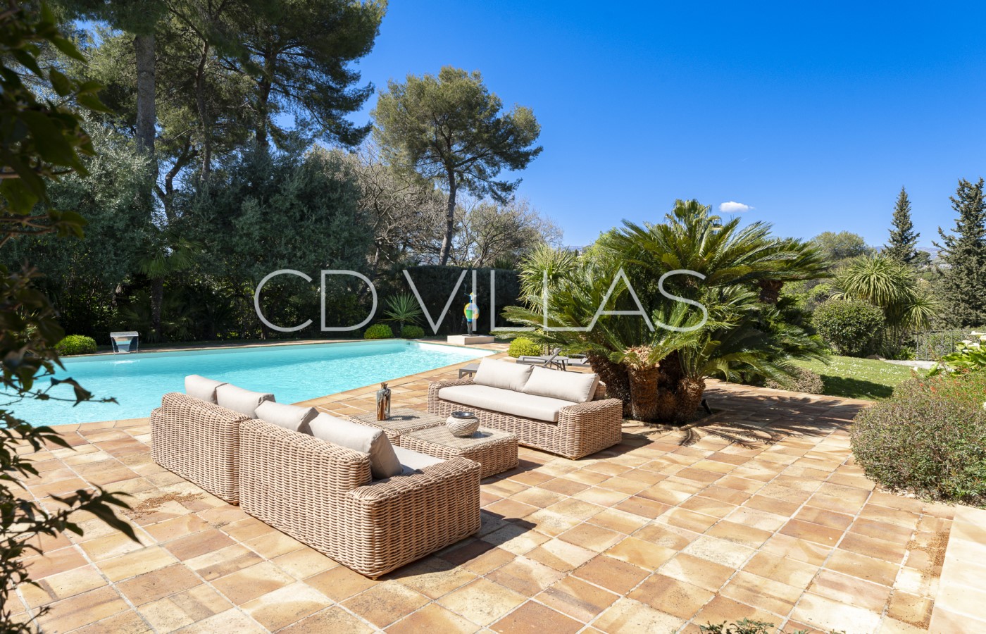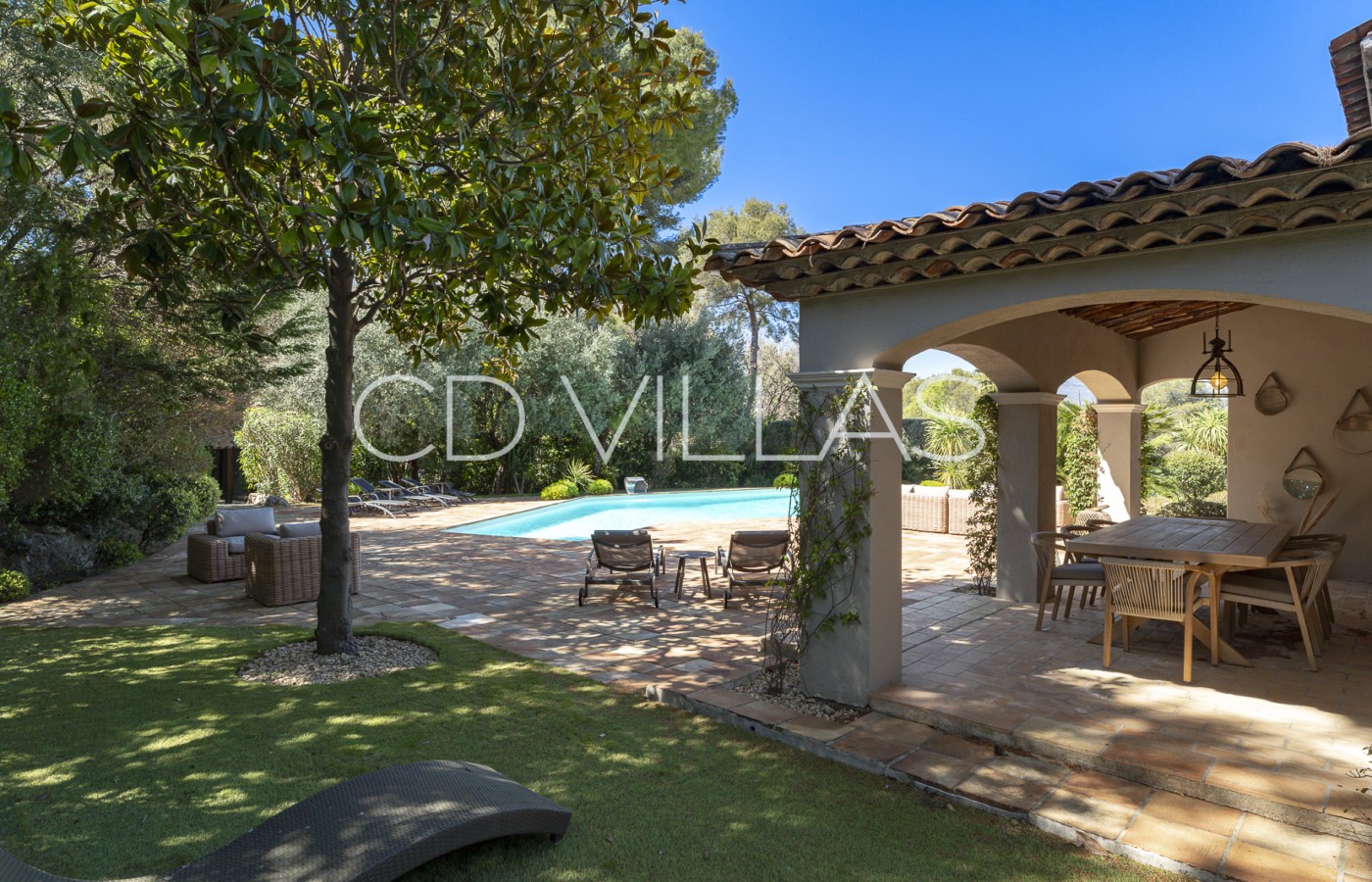 Le domaine est un véritable atout pour la propriété. Entourée d'une végétation méditerranéenne luxuriante, la villa dispose d'une grande piscine, de vastes terrasses et de multiples espaces de détente et de repas, parfaits pour profiter des longues journées d'été et des soirées en plein air.