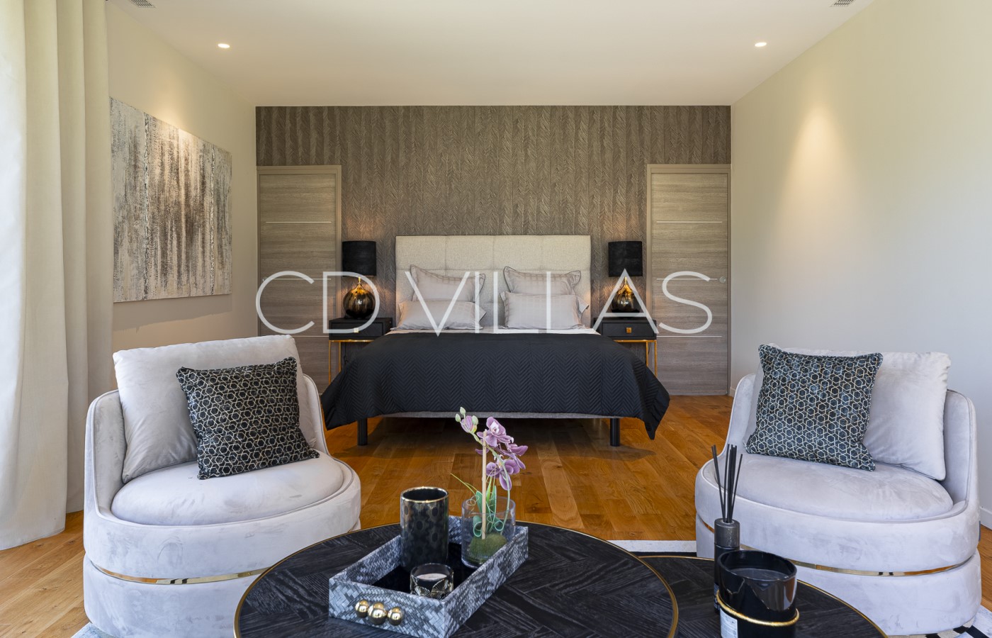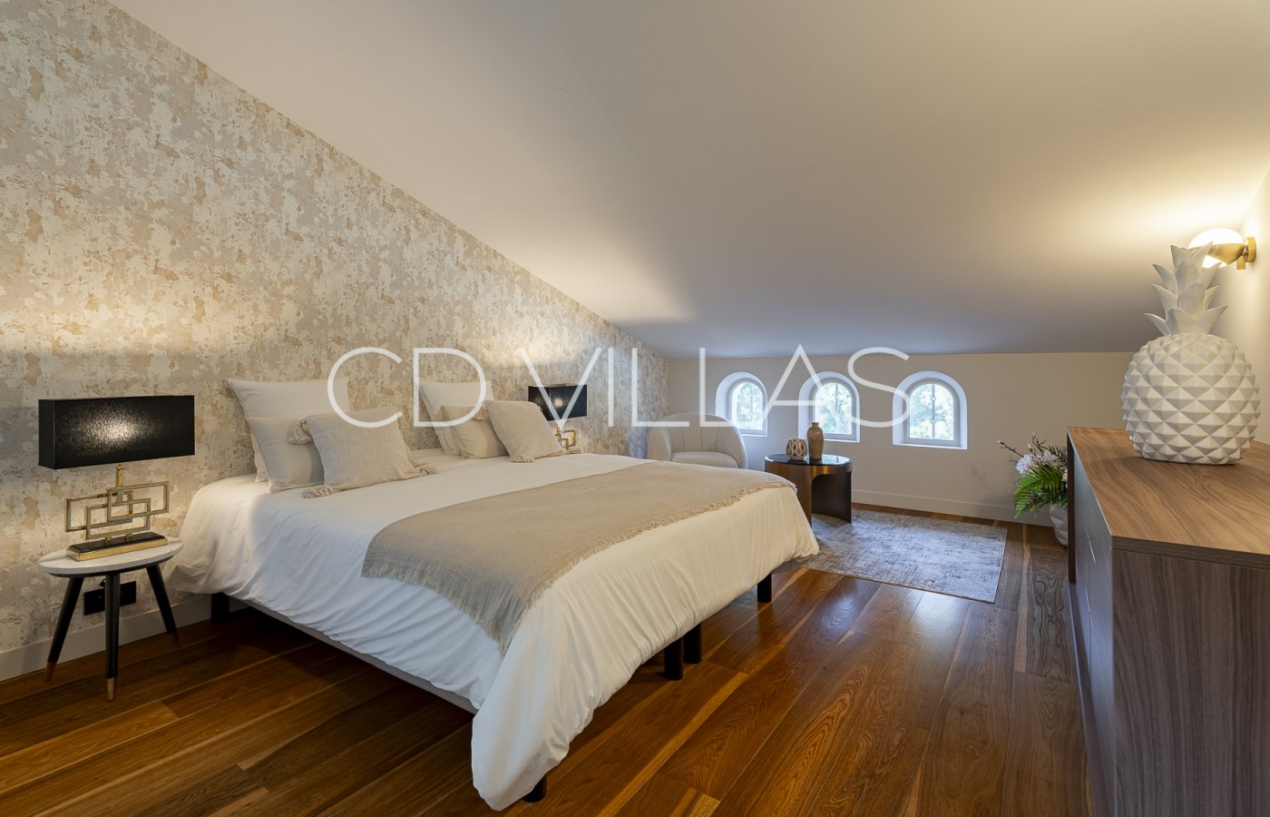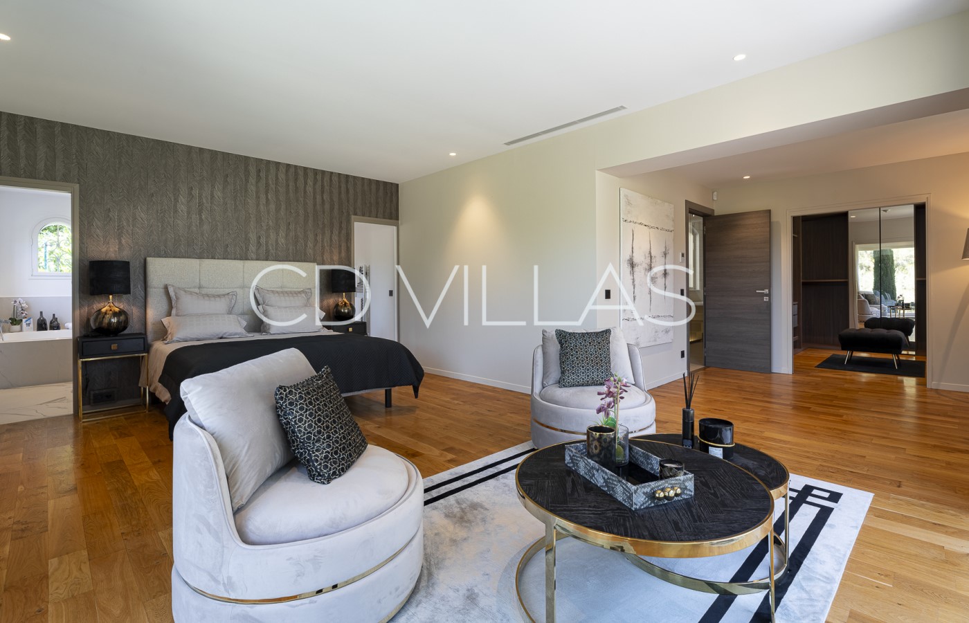 La villa peut accueillir confortablement jusqu'à 10 personnes dans cinq chambres magnifiquement aménagées, chacune avec sa propre salle de bains privative. La suite parentale est particulièrement impressionnante, avec son dressing et sa luxueuse salle de bains. Une mezzanine offre un espace bureau / lecture élégant, idéal pour concilier détente et télétravail.