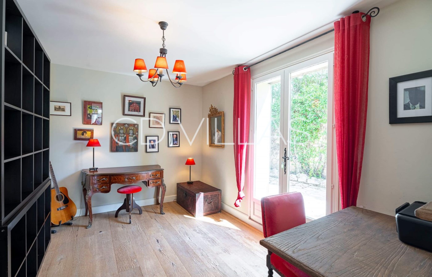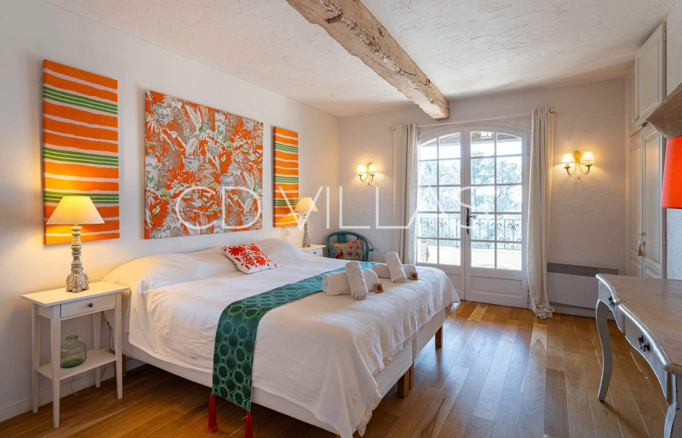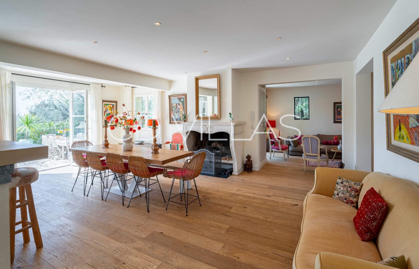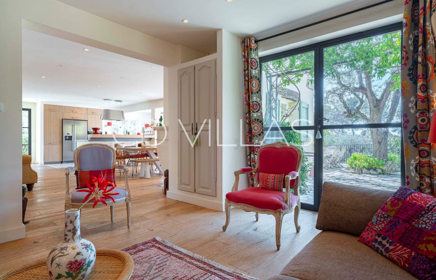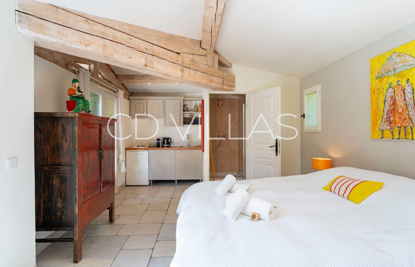 La maison a été magnifiquement rénovée et décorée en 2015 dans un style provençal moderne pour offrir un salon spacieux et lumineux, une cuisine, une salle à manger avec un coin télévision et un bureau adjacents. Il y a 5 chambres au total - quatre dans la maison principale et un appartement séparé au bord de la piscine avec sa propre cuisine. Les chambres à l'étage ouvrent sur un balcon privé donnant sur les collines d'Opio avec un aperçu mer en arrière-plan. En bas, le salon et la cuisine donnent sur une grande terrasse ensoleillée avec une table à manger pour 10 personnes, un barbecue et un coin salon.