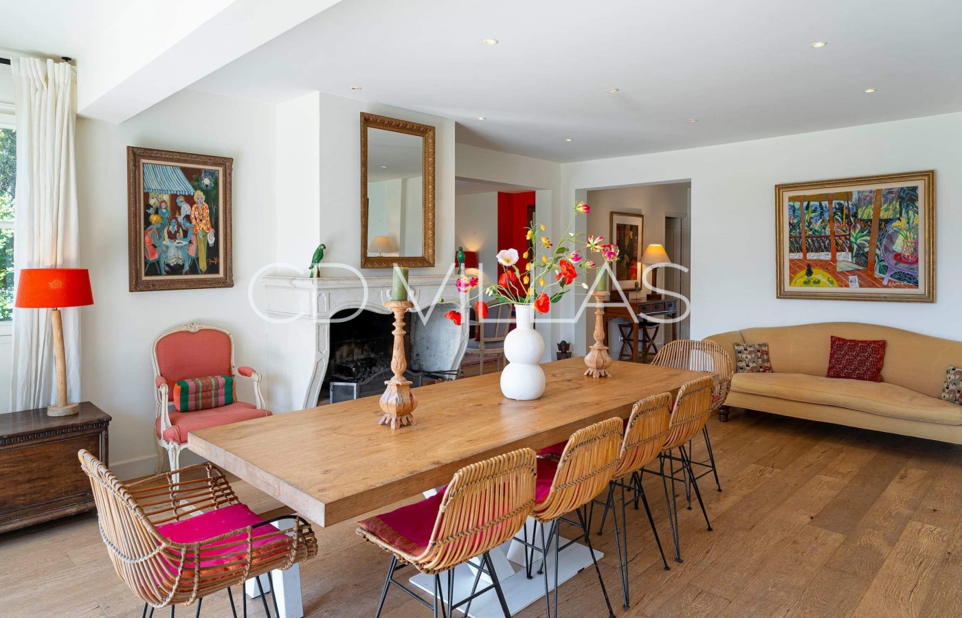 Salle à manger - Salon/salle à manger ouvert avec table pouvant accueillir confortablement 10 personnes.