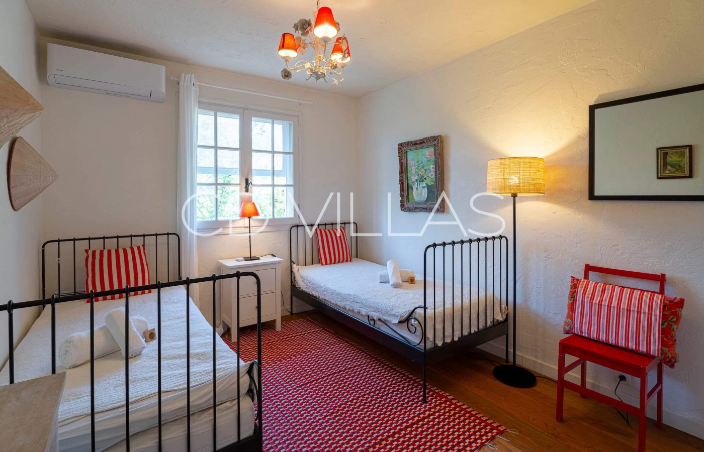 Chambre 3 - Grande chambre avec lit double et vue sur la piscine. Climatisation et salle de bains partagée avec les chambres 2 et 4.